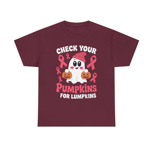 Breast Cancer Halloween Boo Ghost Check Your Pumpkins Womens T-Shirt