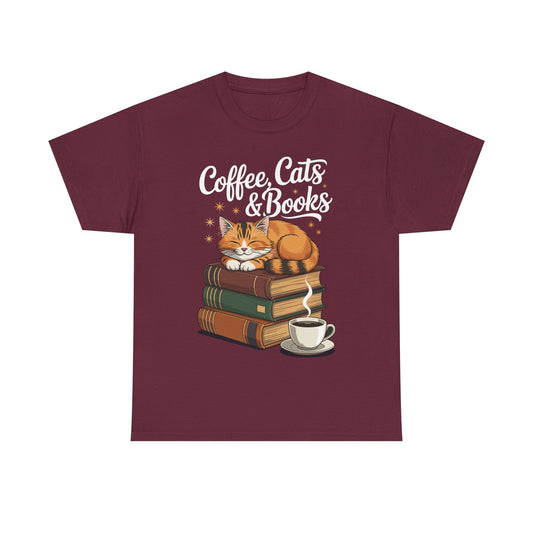 Coffee Cats & Books Lover Tee