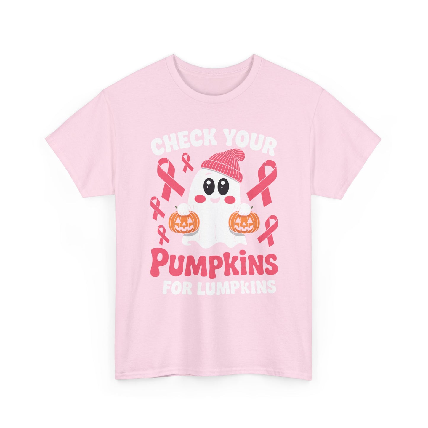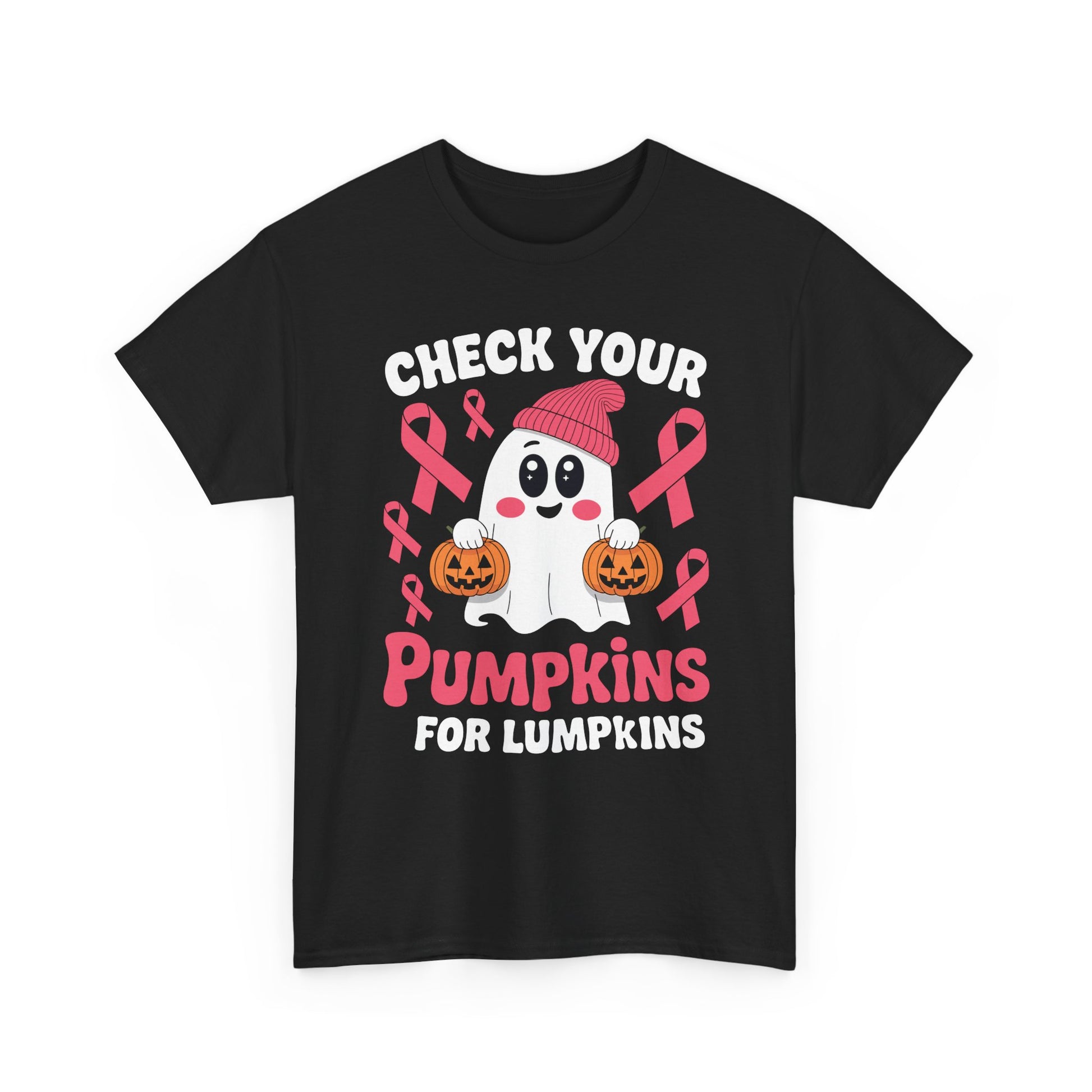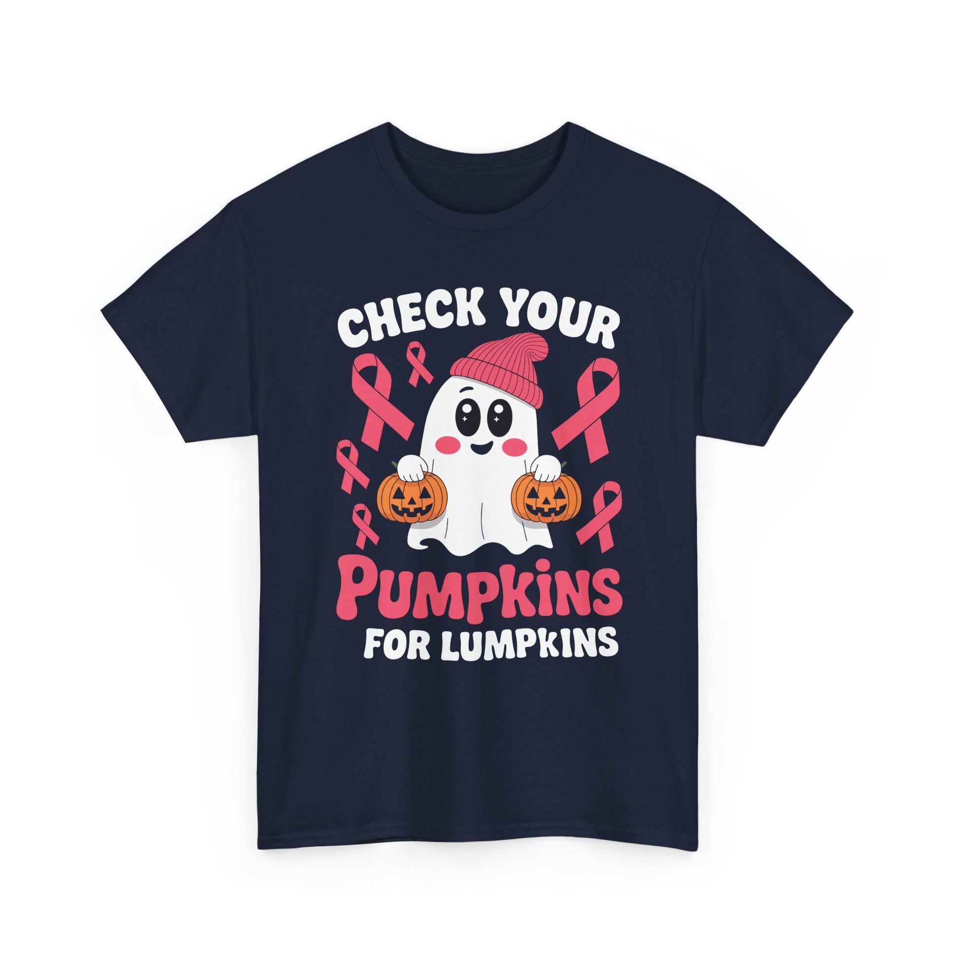 Breast Cancer Halloween Boo Ghost Check Your Pumpkins Womens T-Shirt
