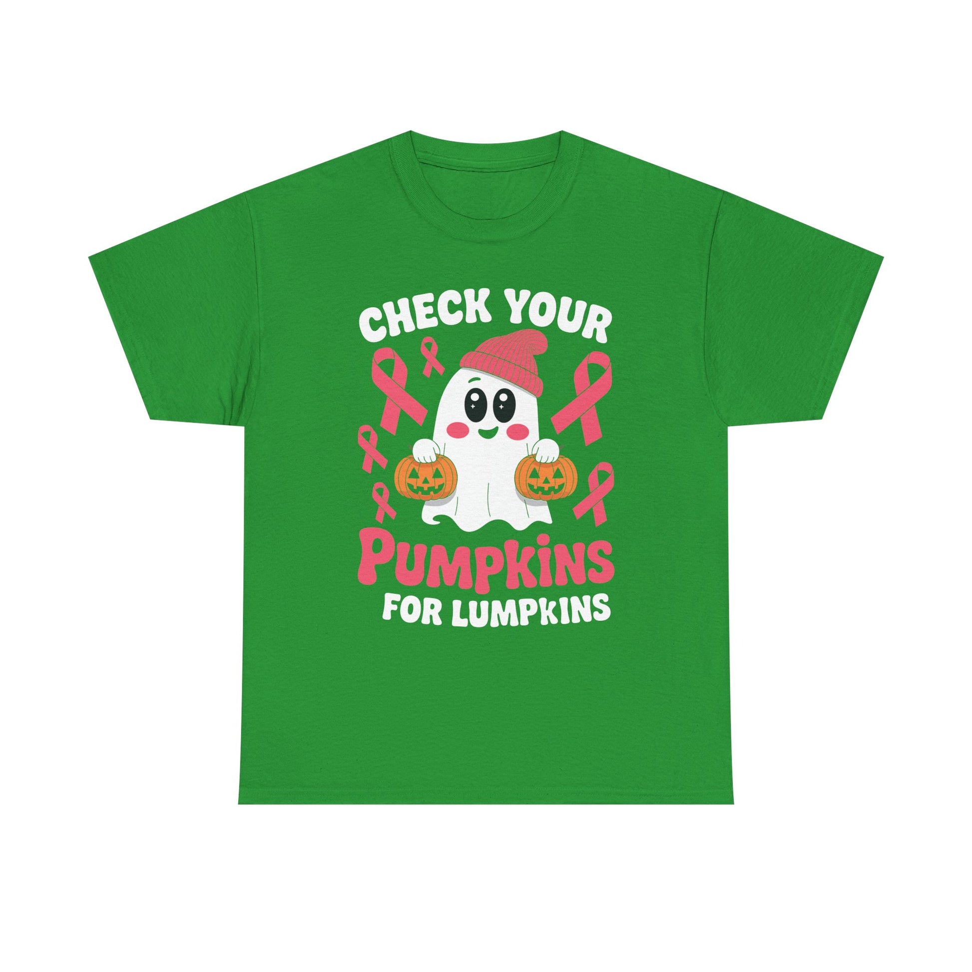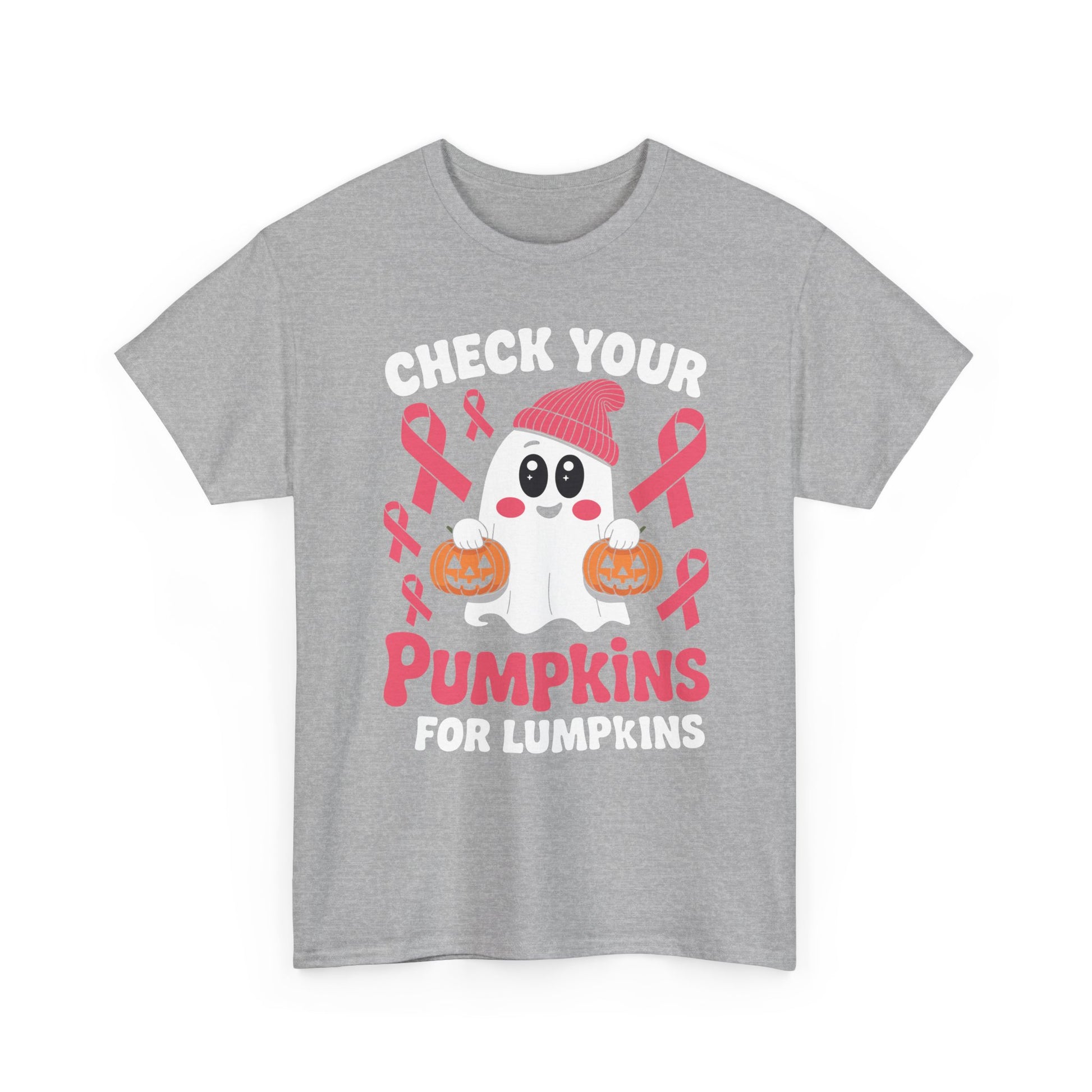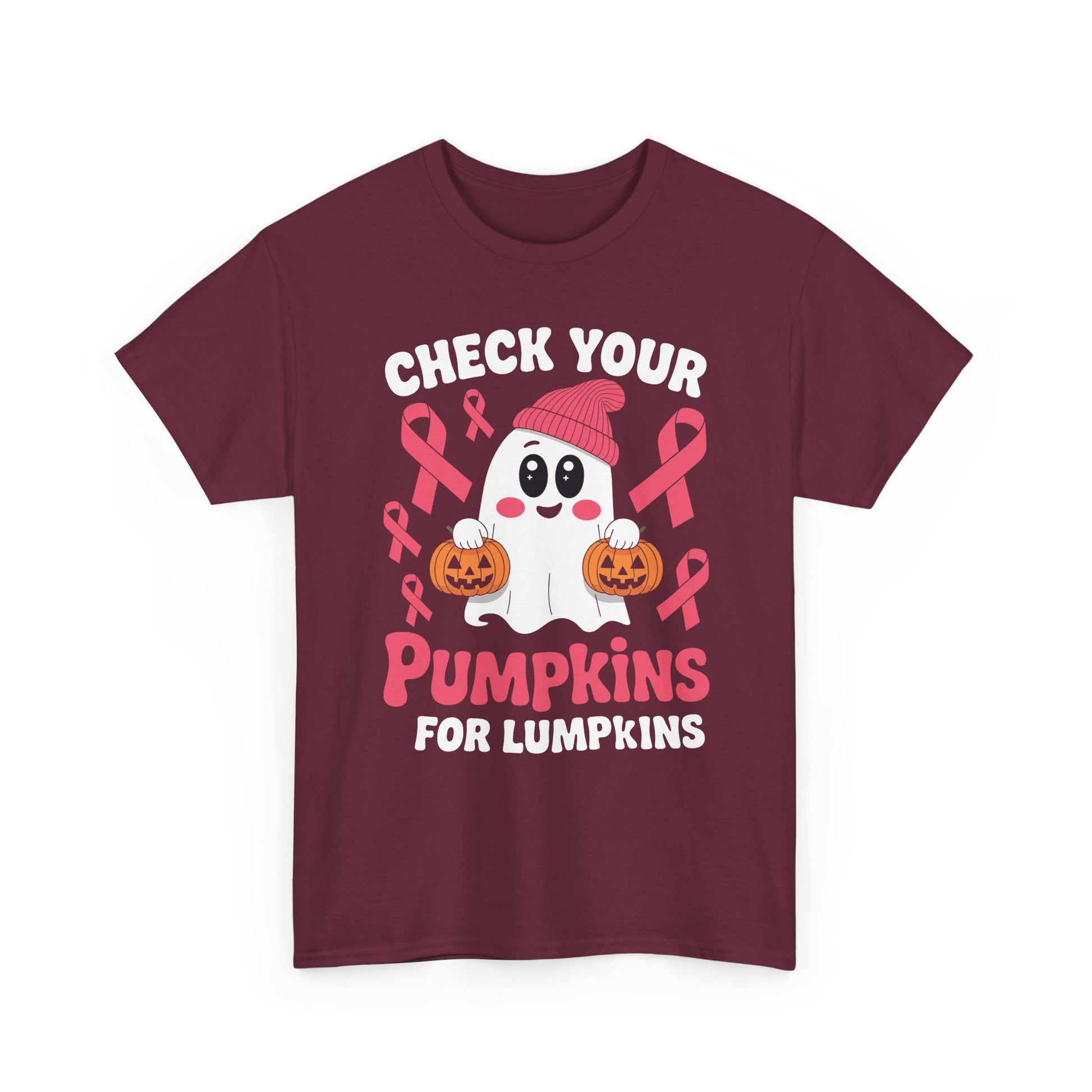 Breast Cancer Halloween Boo Ghost Check Your Pumpkins Womens T-Shirt