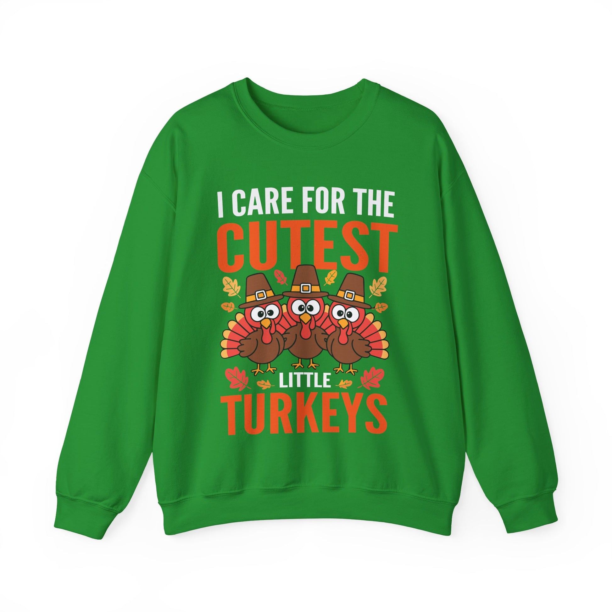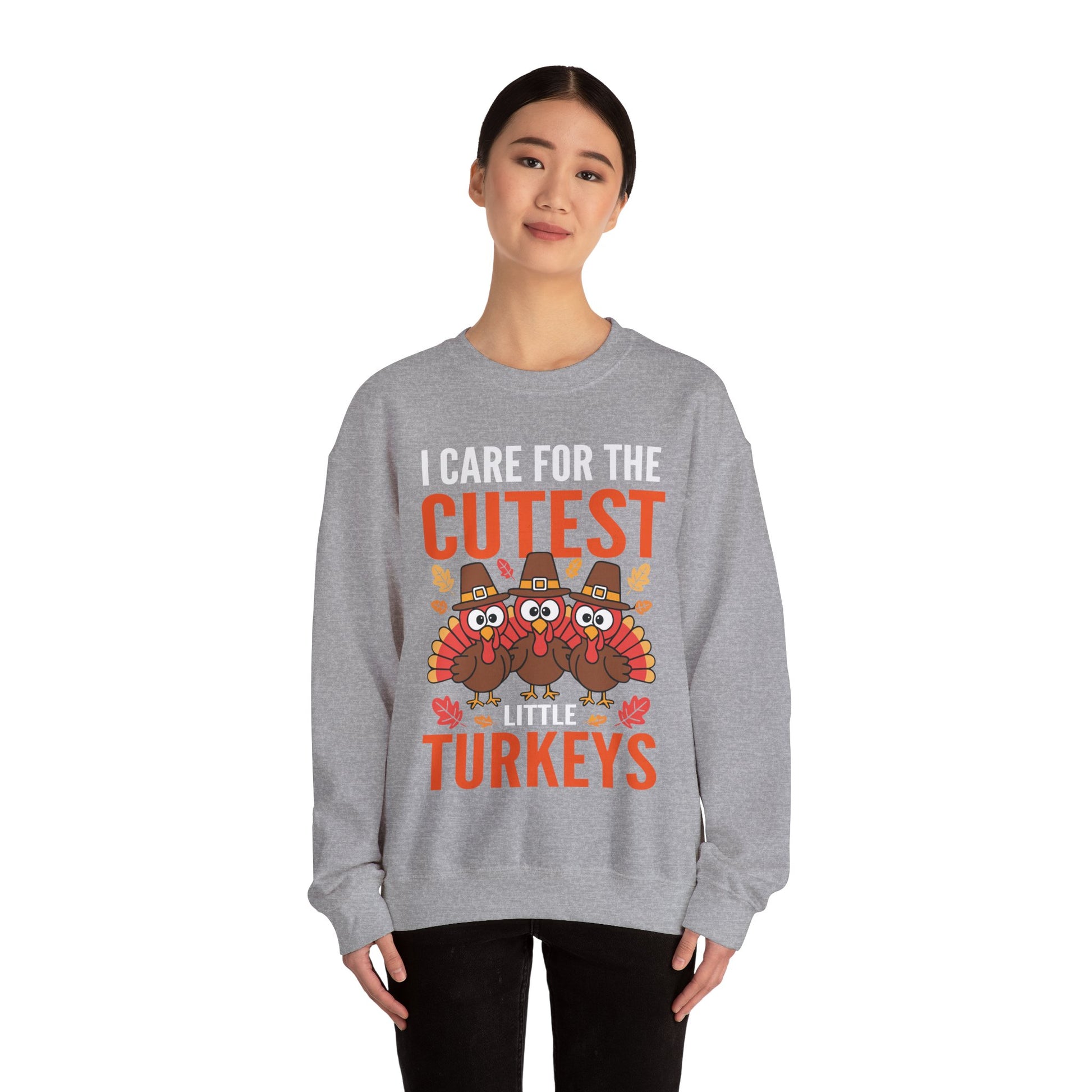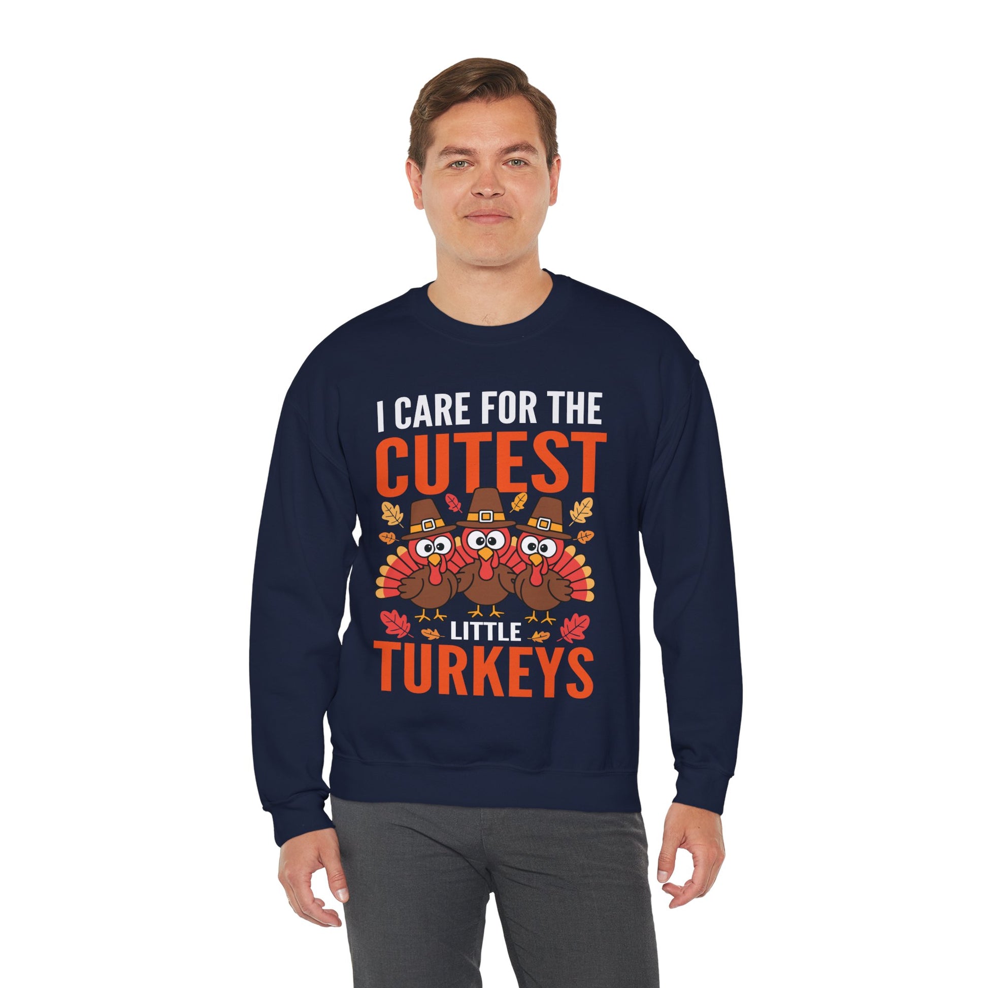 Care For Little Turkeys Nurse Fall Thanksgiving Scrub Top Sweatshirt