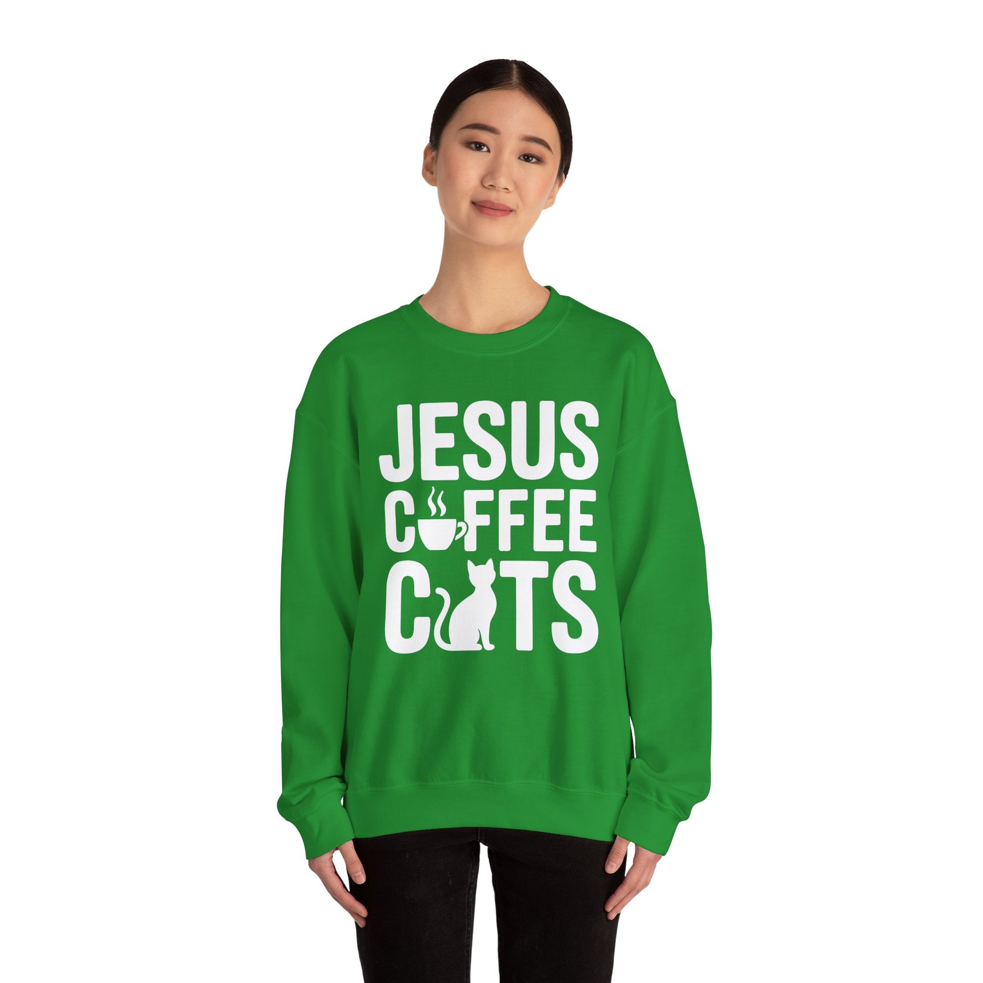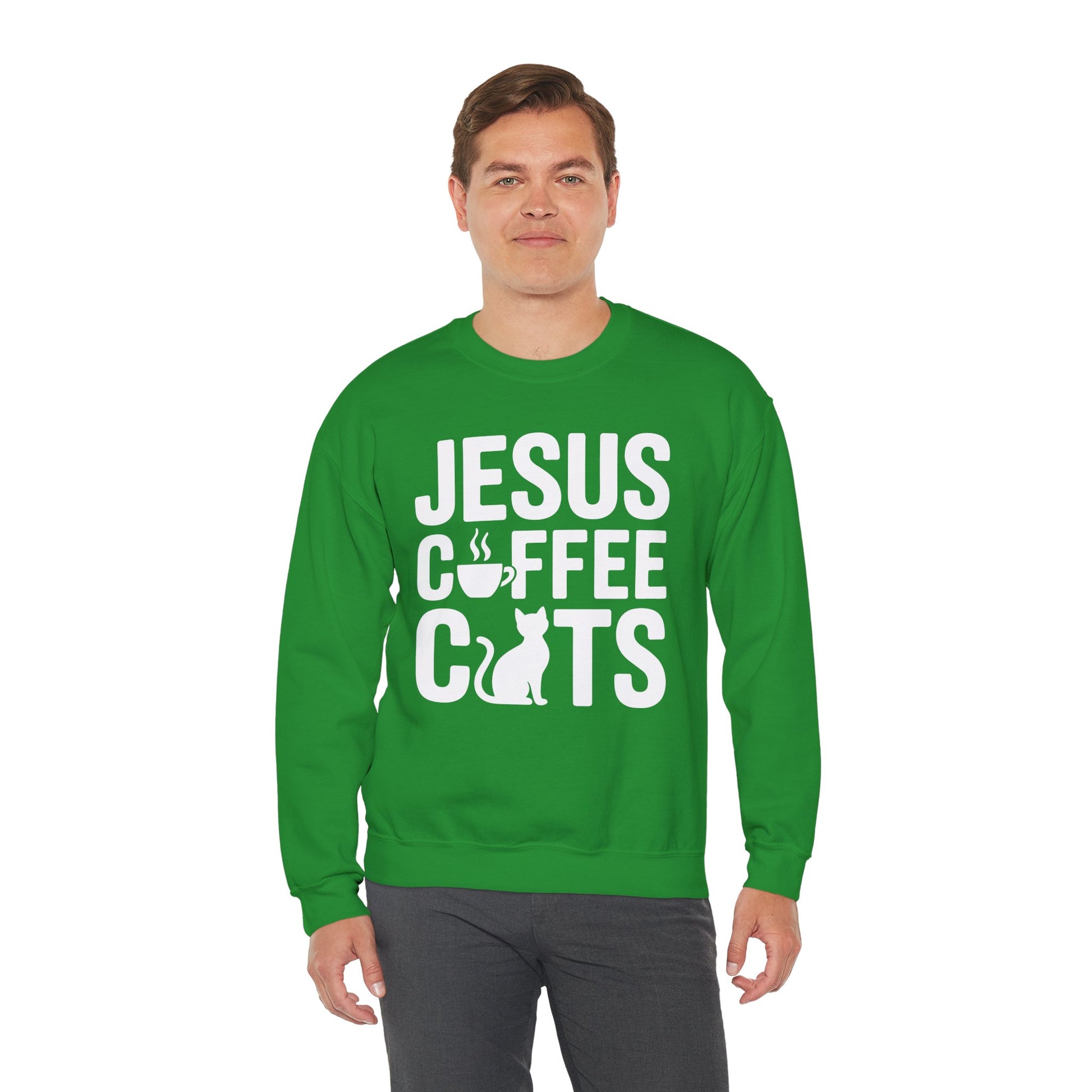 Christian Jesus, Coffee, Cats - Religous Cat Caffeine Lover Sweatshirt