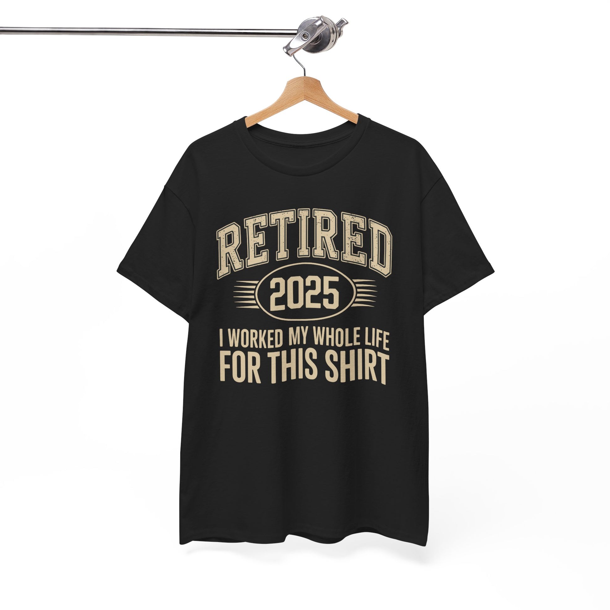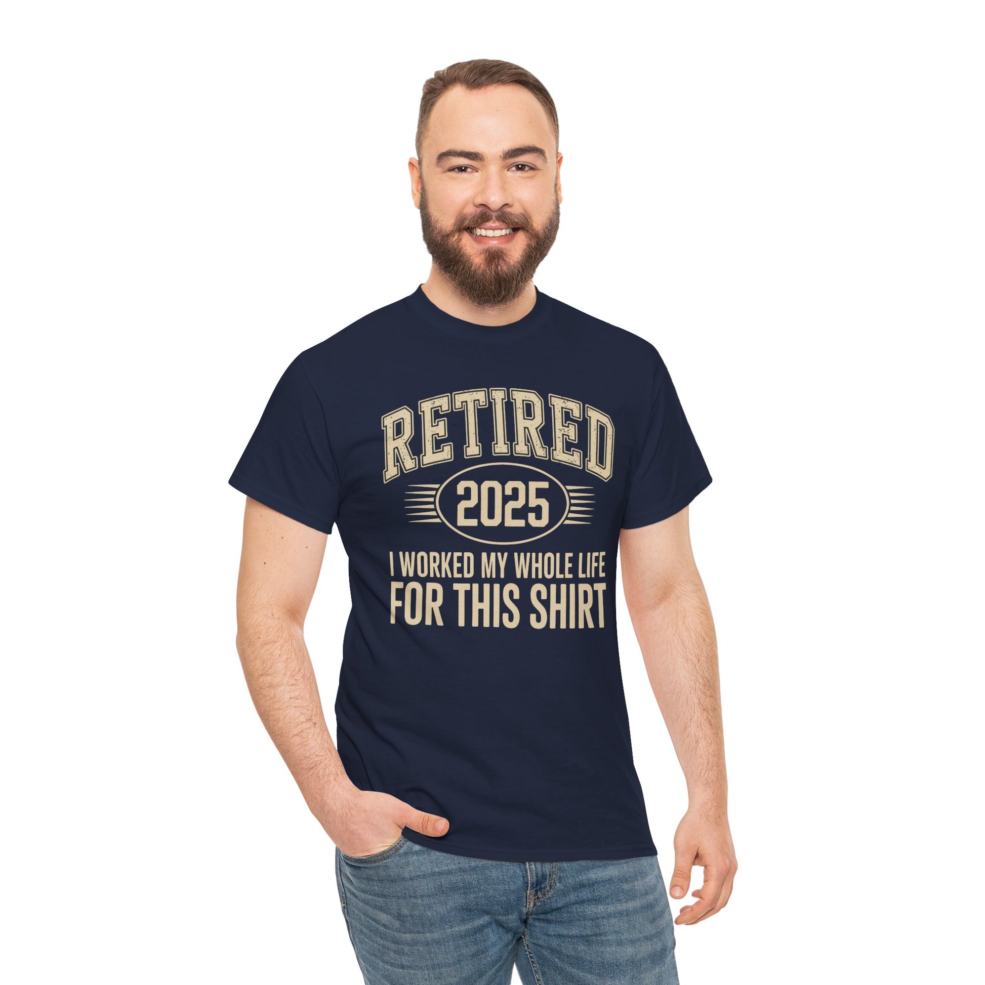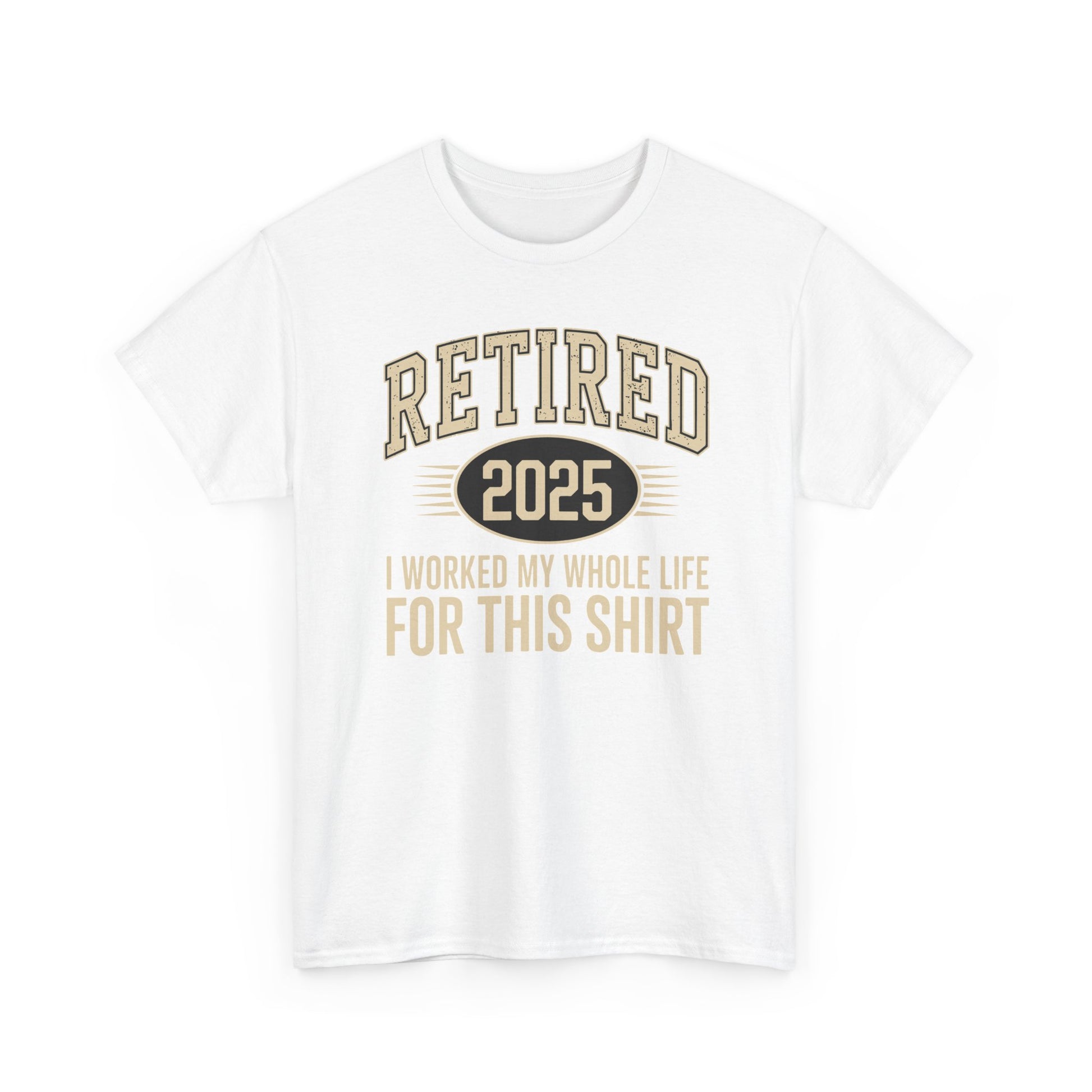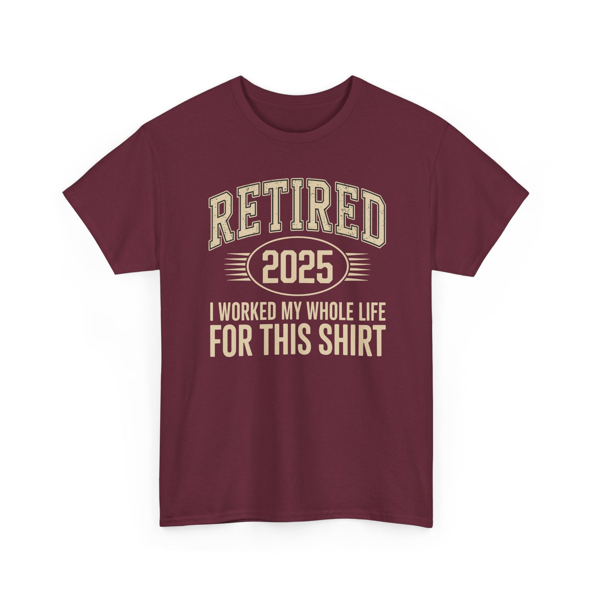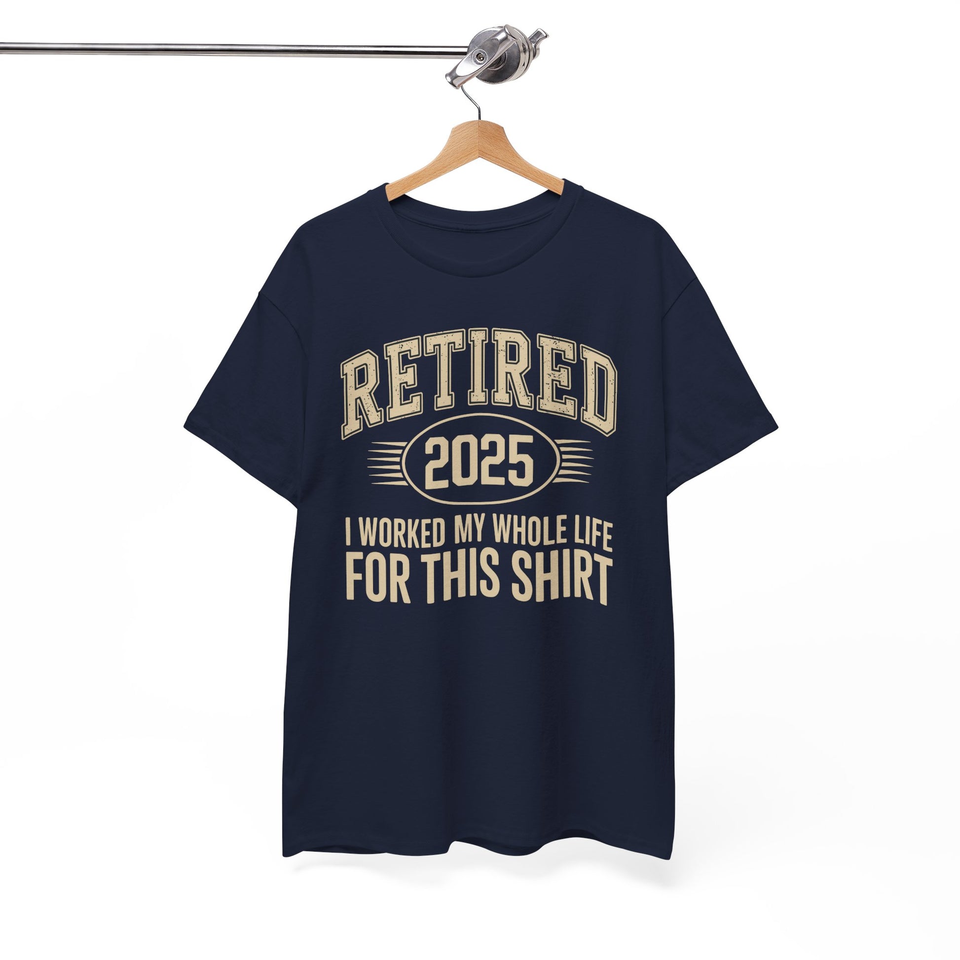 Bold “Worked My Whole Life for This” Design That Gets Laughs Printed in a classic collegiate style, the “Retired 2025” slogan is a conversation starter and a celebration of a career well spent.