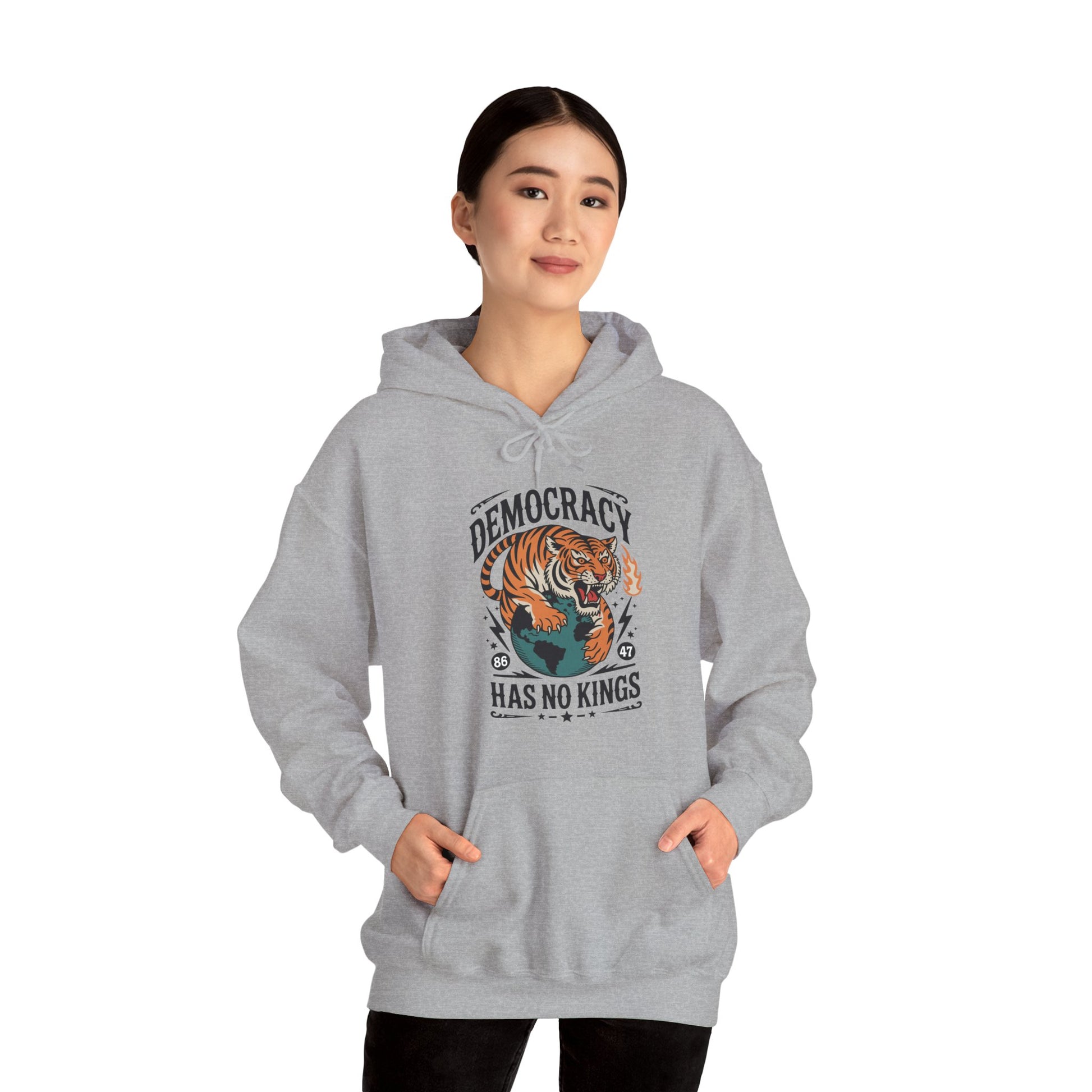 Ever wonder what democracy would say if it had a voice? Spoiler alert: it wouldn’t wear a crown. The Democracy Has No King 8647 Anti-Trump America Social Justice Hoodie is your wearable declaration of independence from authoritarianism. It’s not just a hoodie—it’s a movement stitched in fleece.