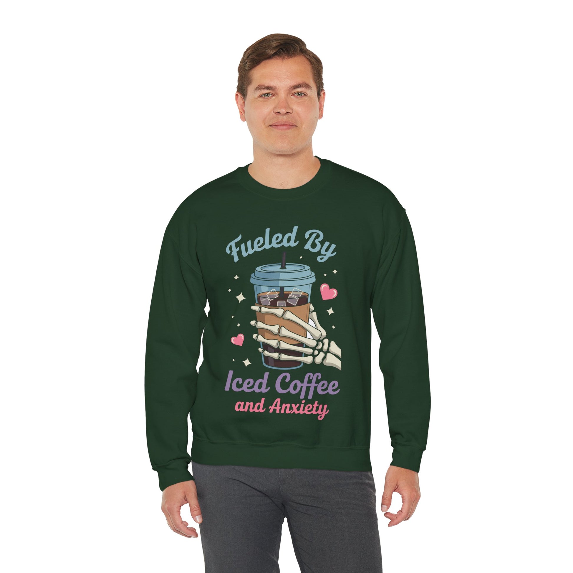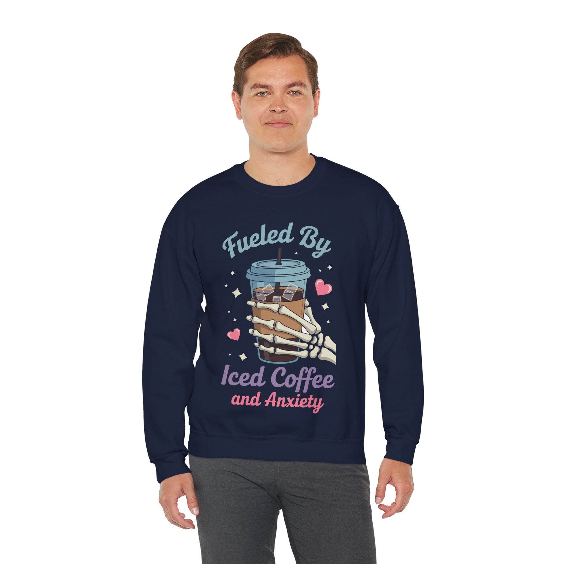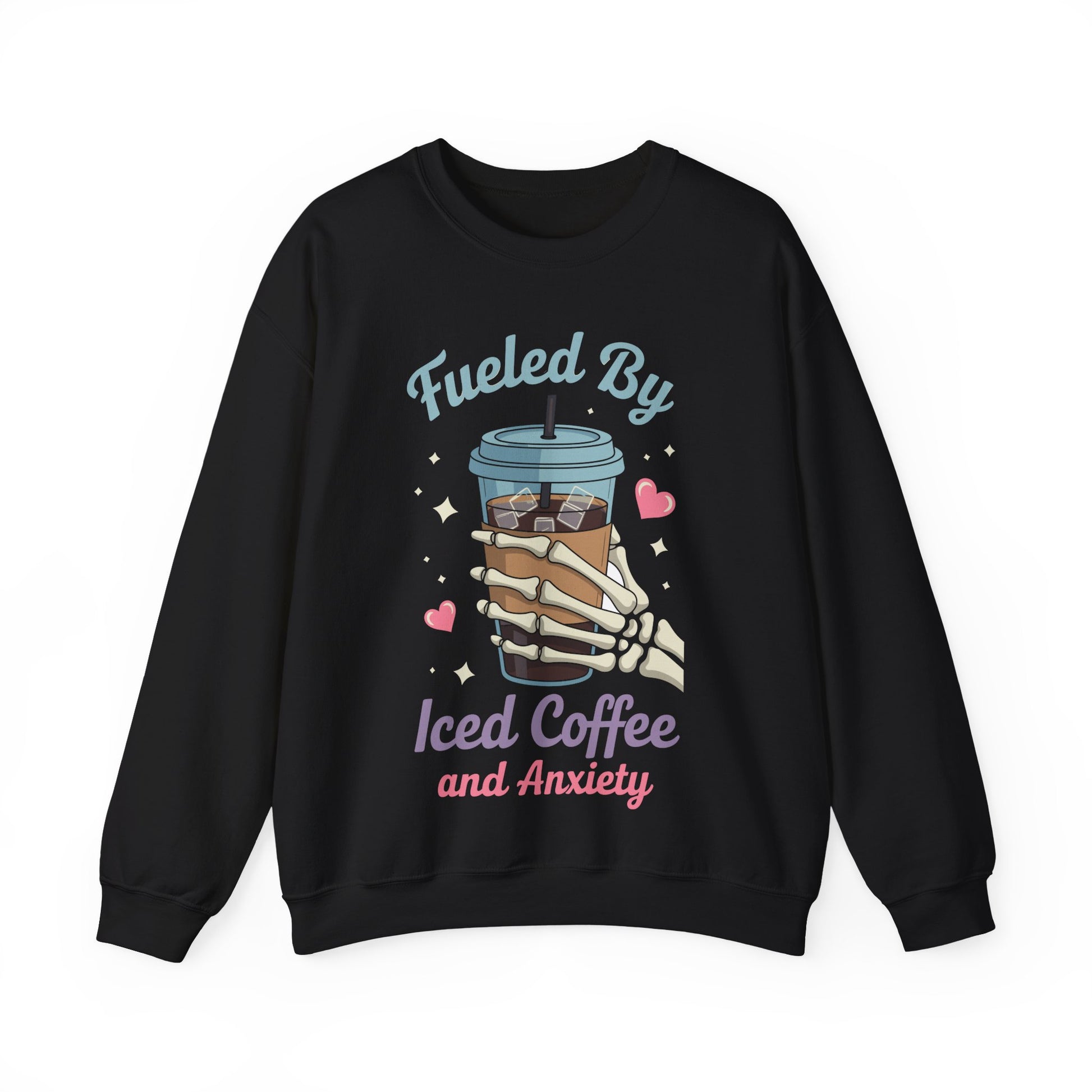 Fueled by Iced Coffee and Anxiety Funny Coffee Lover Sweatshirt