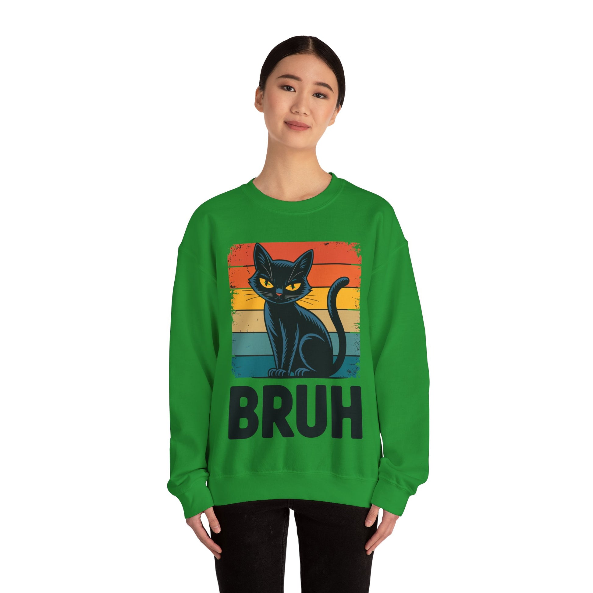 Ever feel like your cat silently judges your life choices with one word: “Bruh”? This sweatshirt captures that iconic feline attitude in meme form. Whether you're a teen perfecting your eye-roll, a cat-loving adult fluent in sarcasm, or someone who just wants to stay warm while being hilarious—this pullover is your go-to for comfort and comic relief.