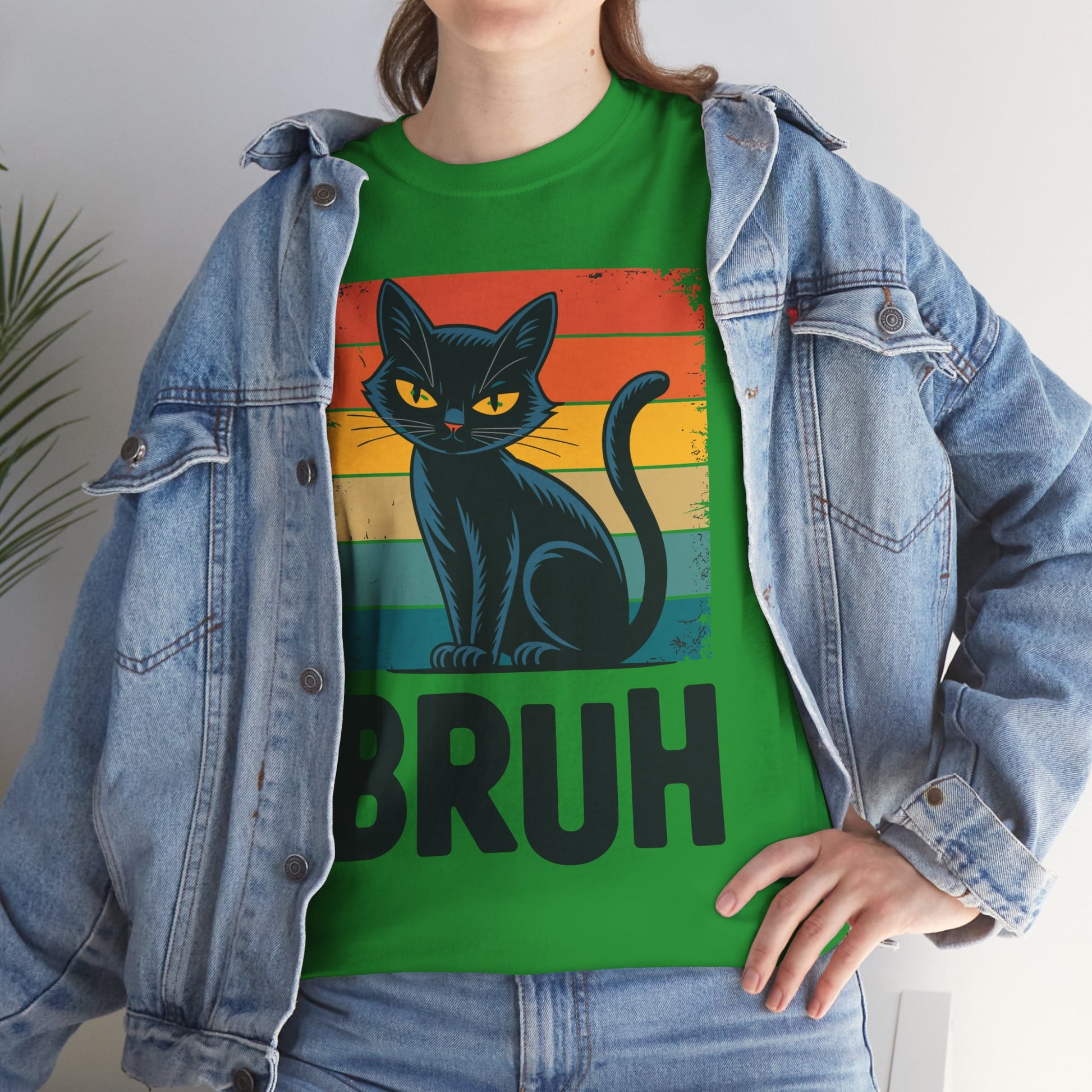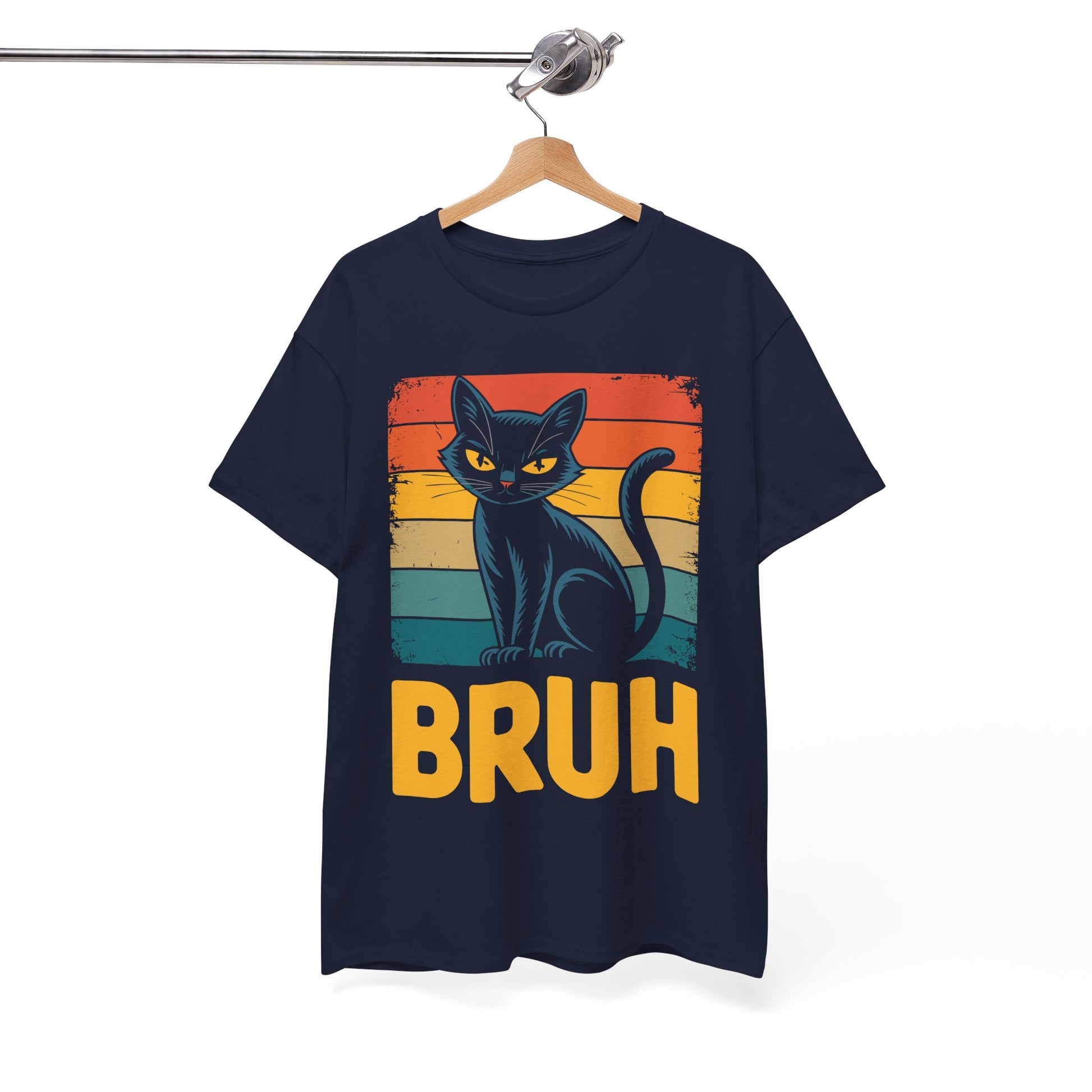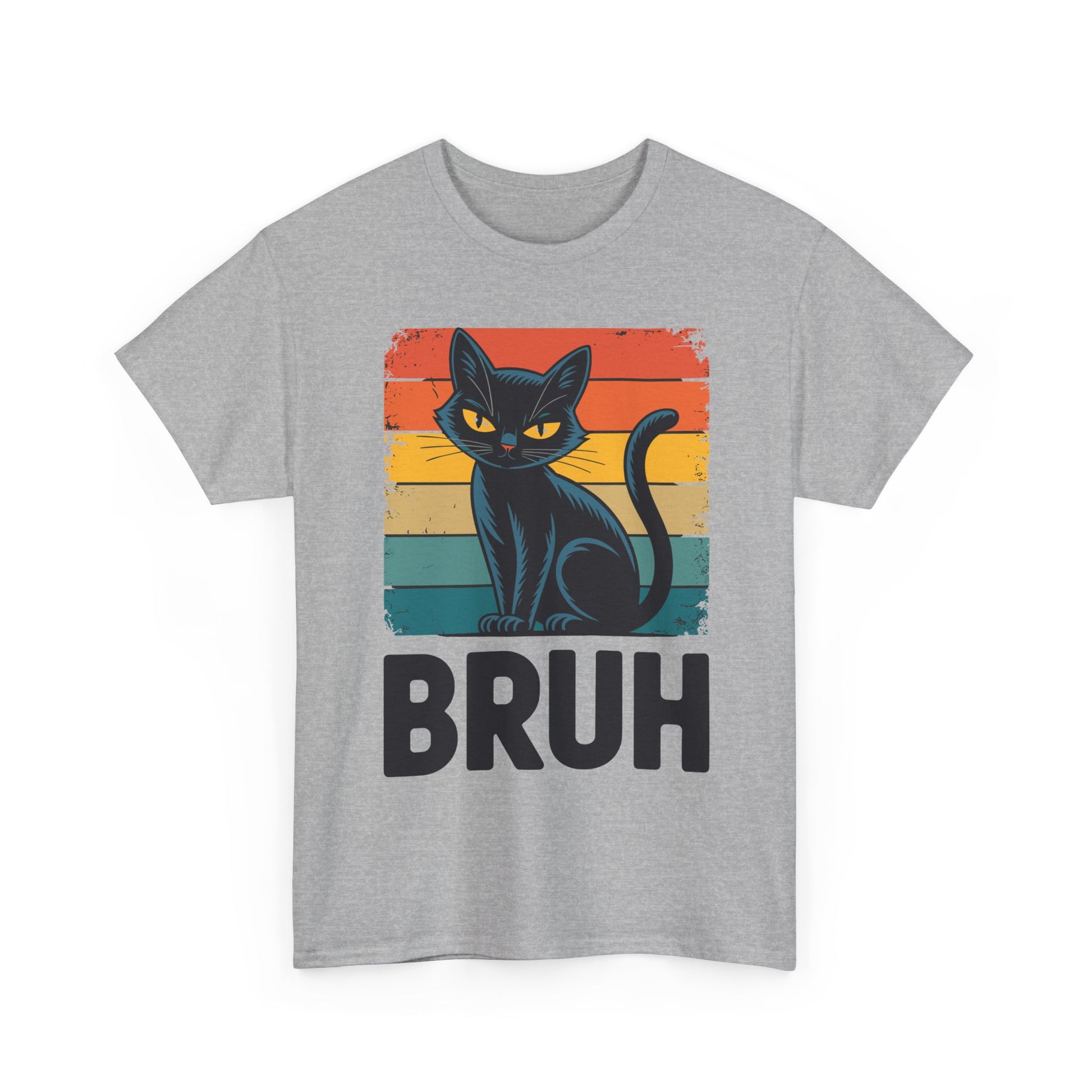 Iconic “Bruh” Cat Graphic: Features a cartoon cat with a deadpan “Bruh” face—perfect for meme lovers, cat fans, and anyone fluent in Gen Z humor.