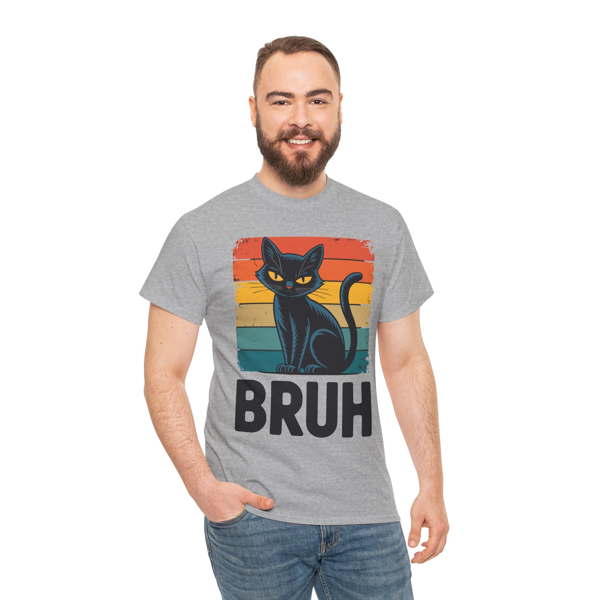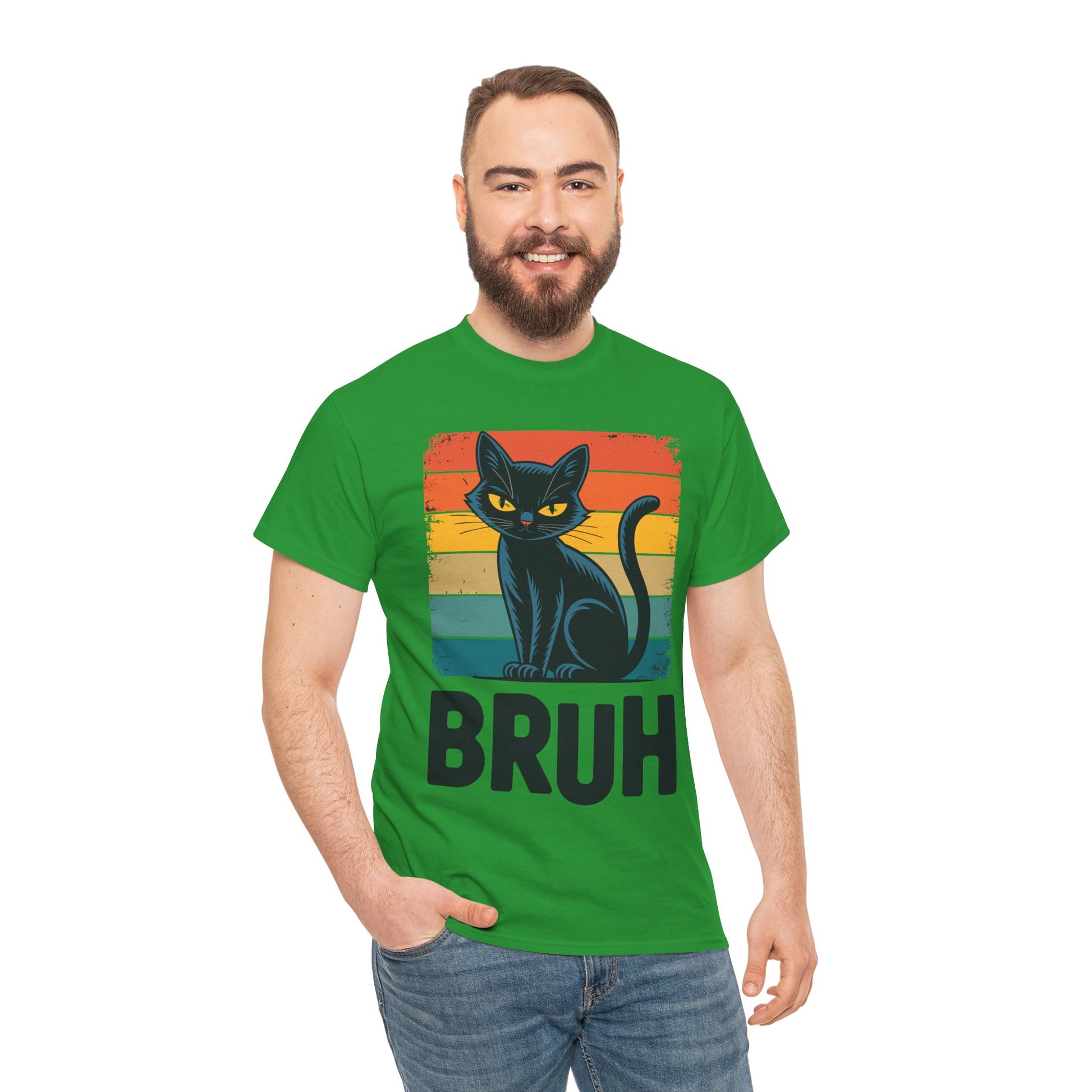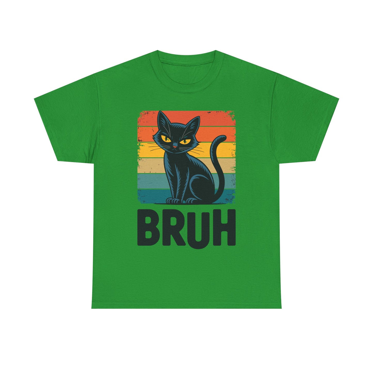 Iconic “Bruh” Cat Graphic: Features a cartoon cat with a deadpan “Bruh” face—perfect for meme lovers, cat fans, and anyone fluent in Gen Z humor.