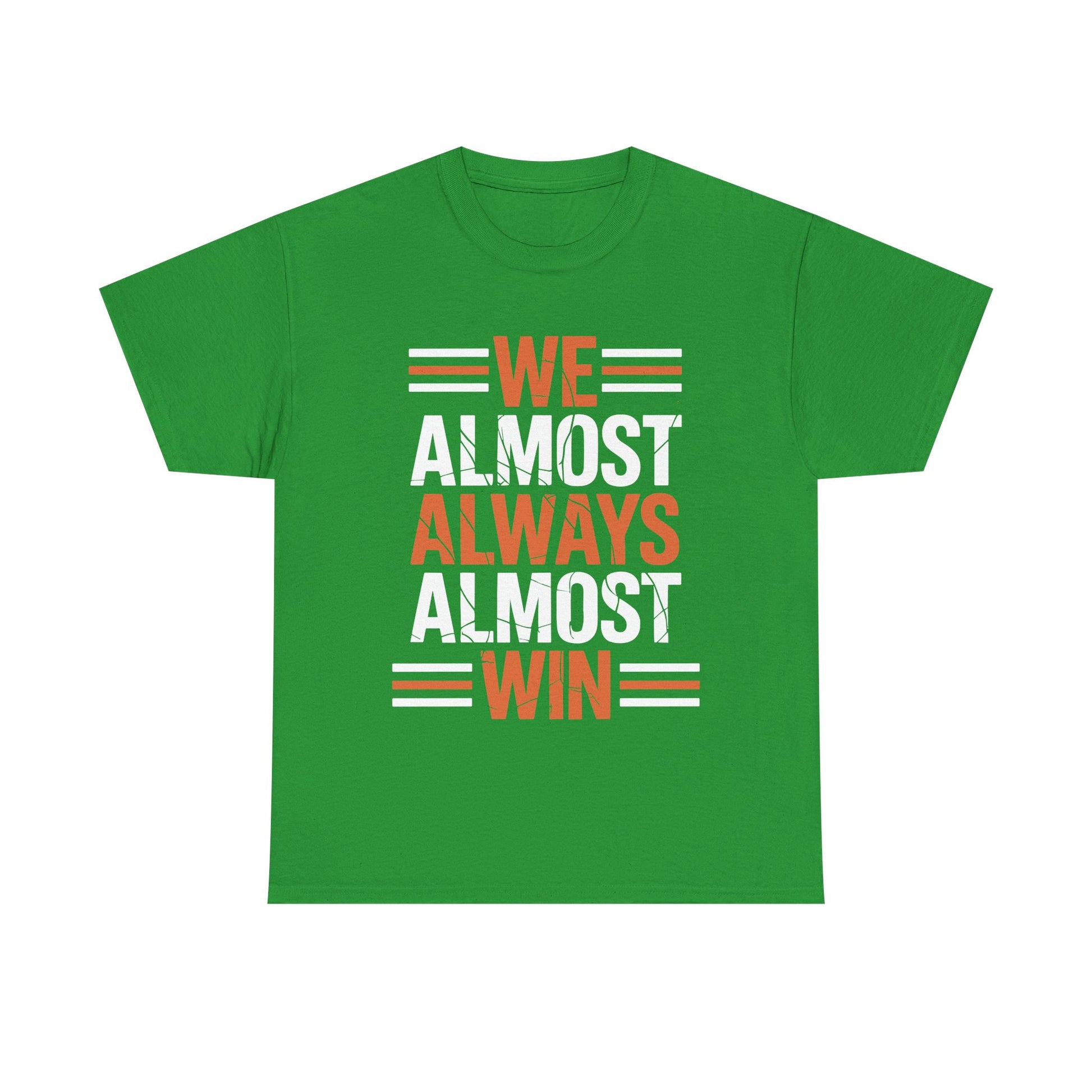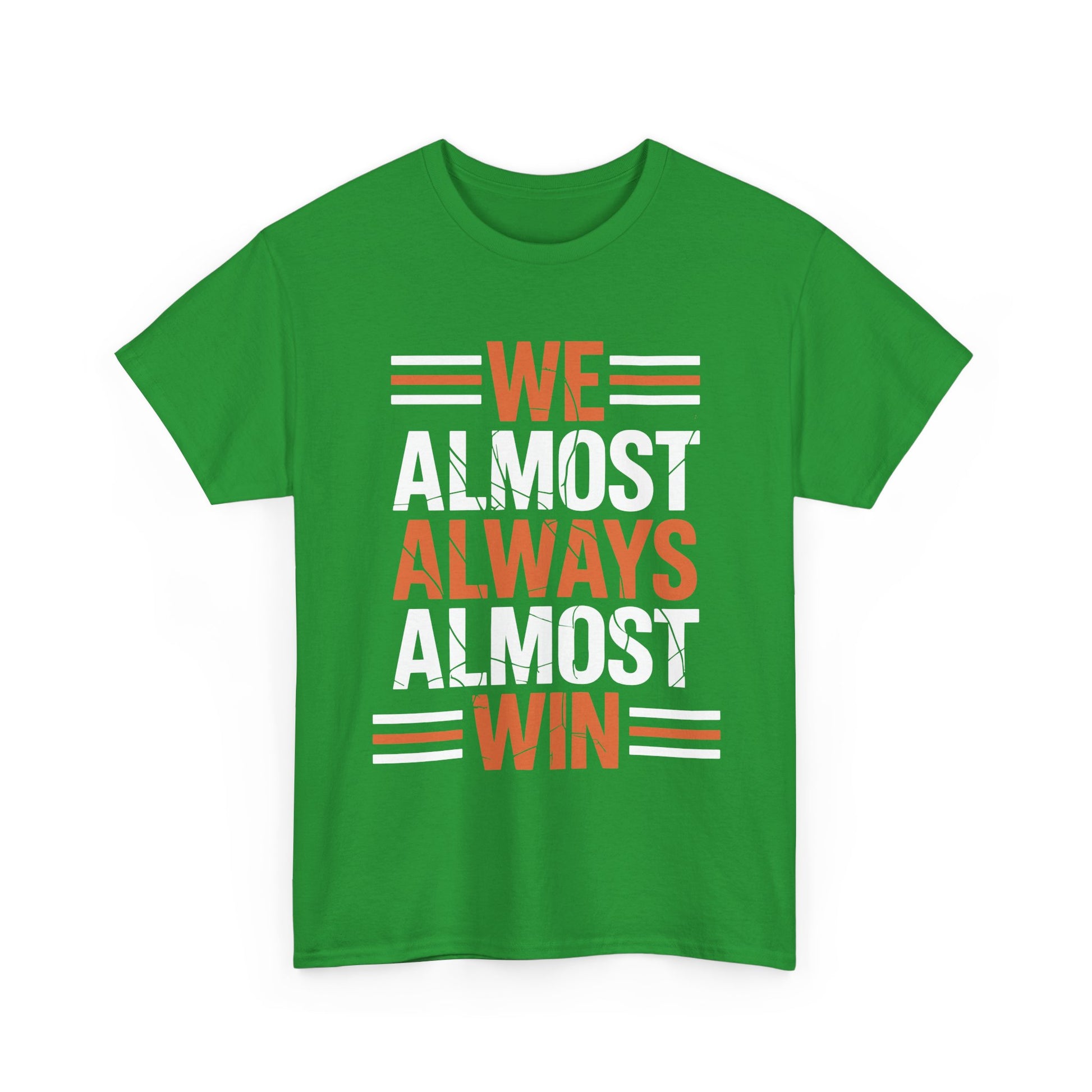 Is it optimism or just tradition? For Cleveland football fans, “We Almost Always Almost Win” isn’t just a saying—it’s a lifestyle. This throwback t-shirt is made for those who’ve cheered through heartbreak, laughed through losses, and still show up every Sunday. If your game-day wardrobe lacks humor and hometown pride, this tee solves that problem with a design that’s sarcastic, nostalgic, and proudly self-aware.