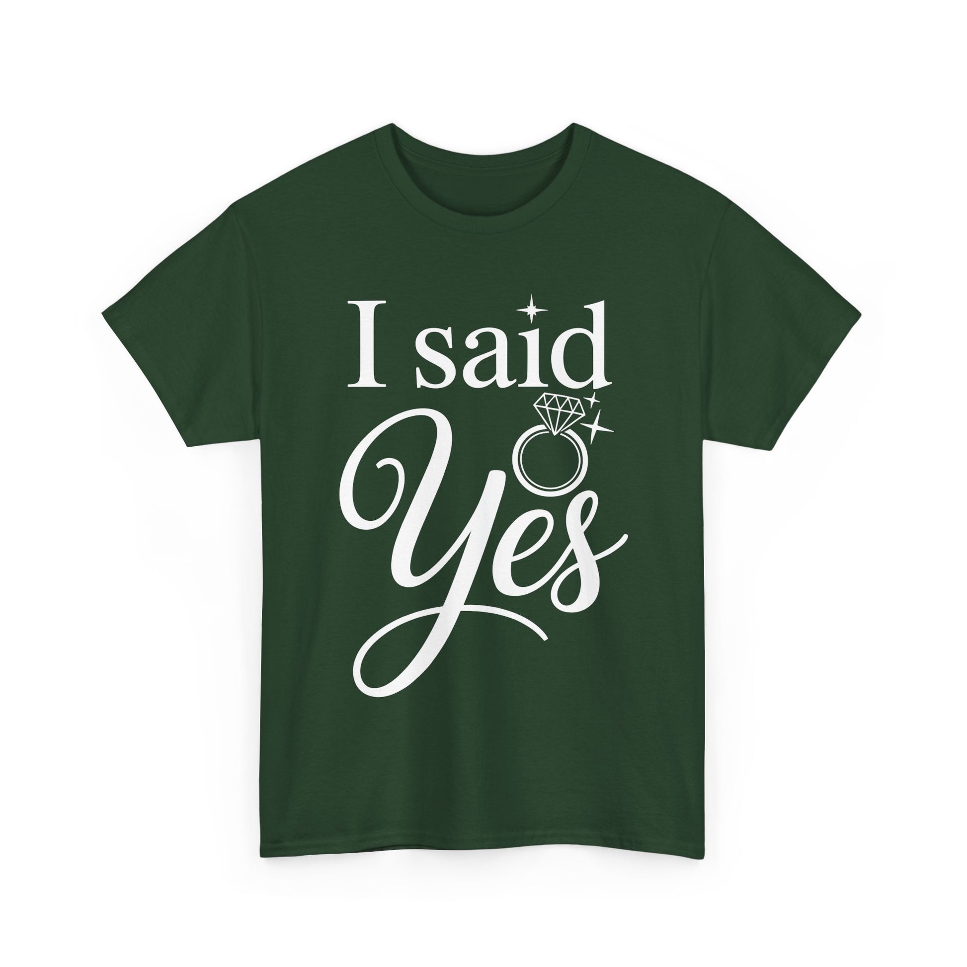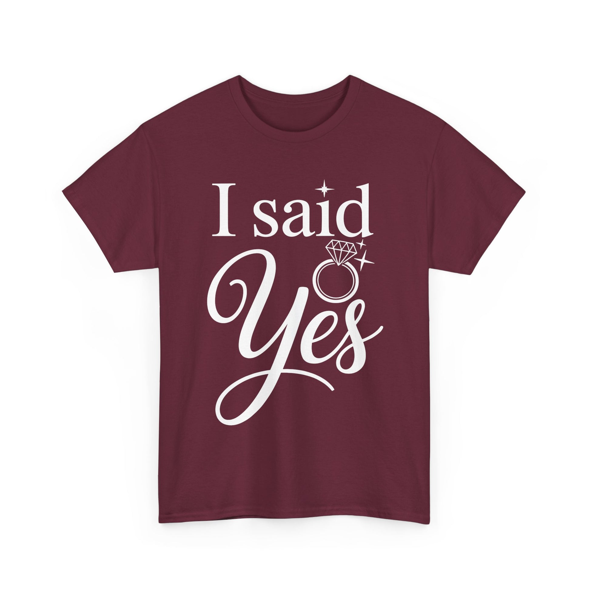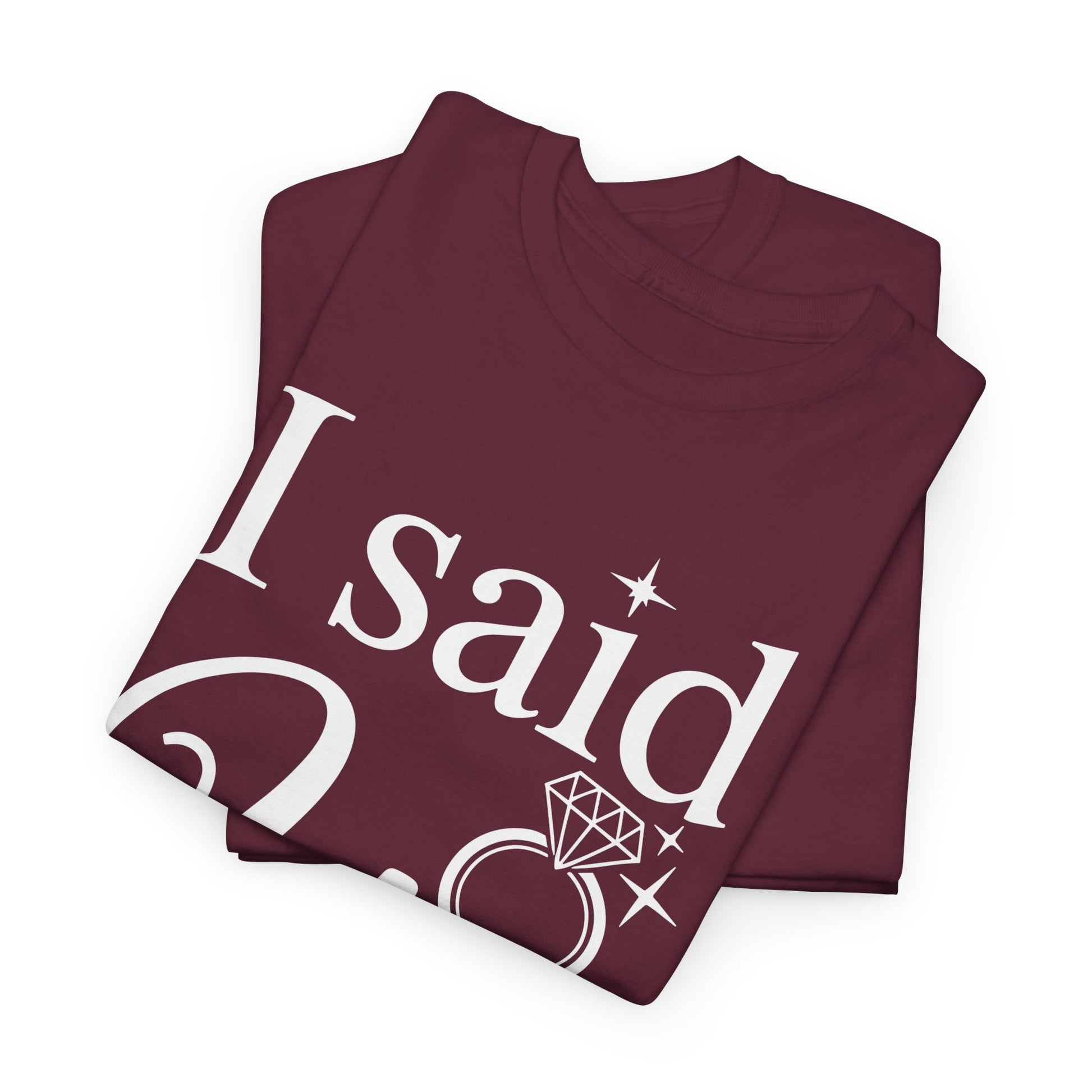 Just got engaged and want to share the news without sounding too serious? This “I Said Yes” T-shirt is the perfect way to announce your big moment with humor and style. Whether you're heading to an engagement party, snapping proposal pics, or just soaking in the glow of your new relationship status, this tee adds personality to your celebration.