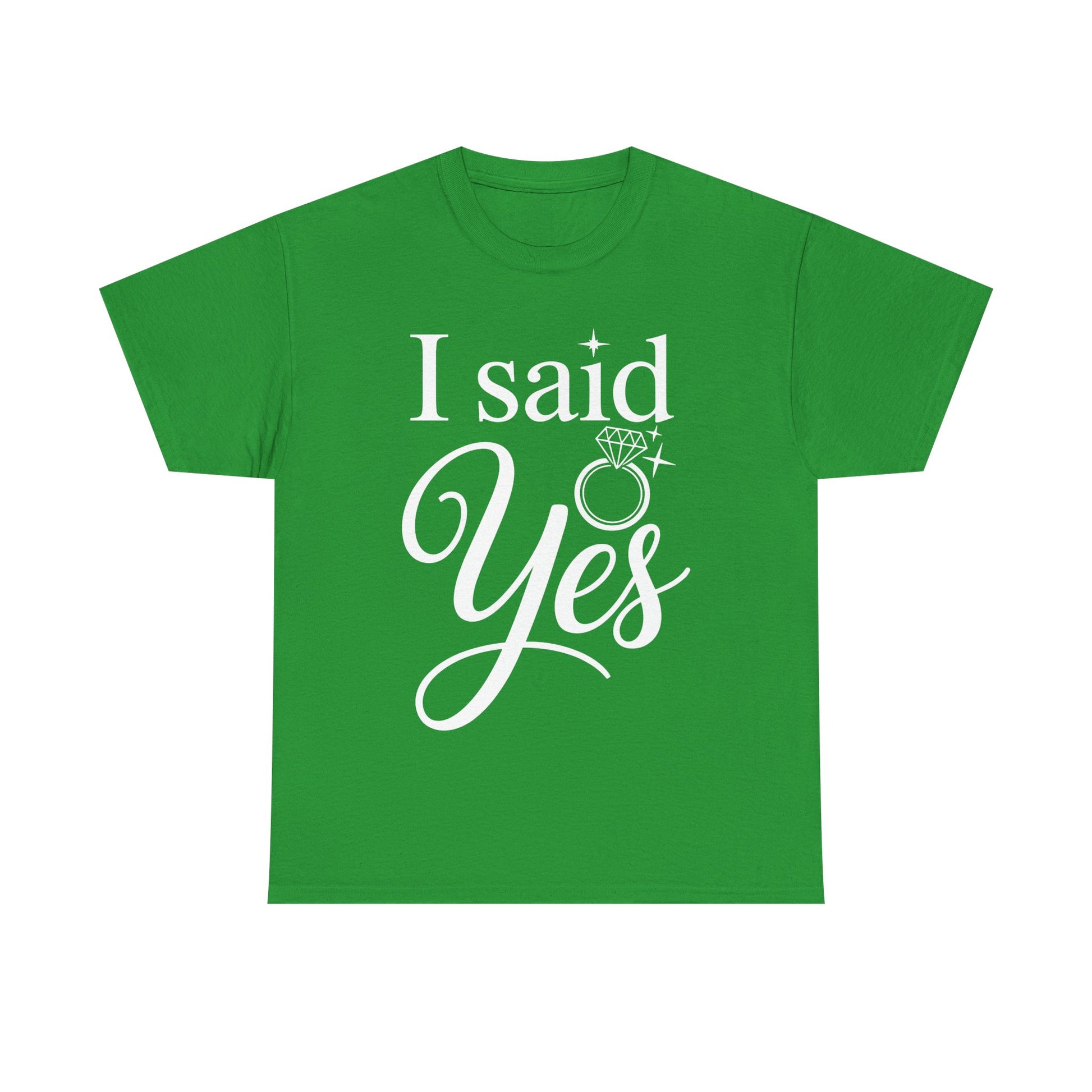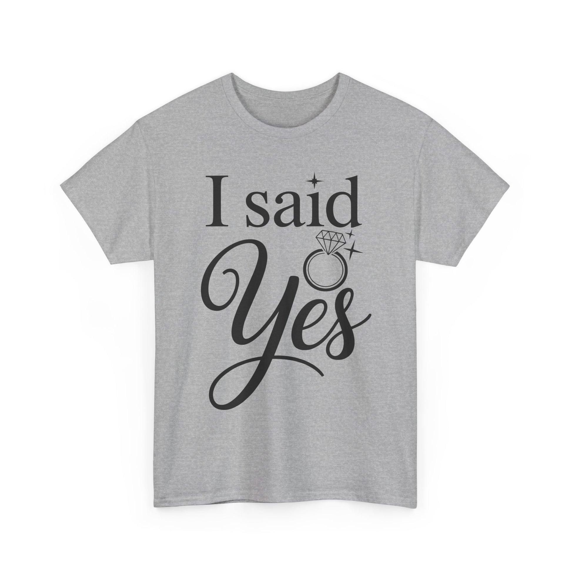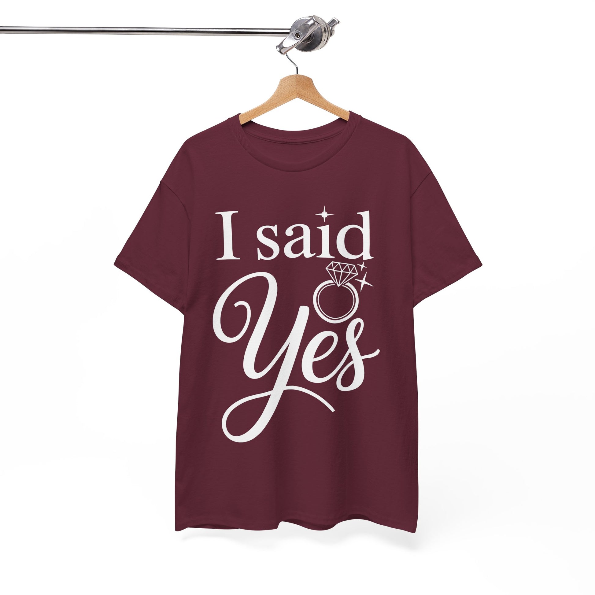 Just got engaged and want to share the news without sounding too serious? This “I Said Yes” T-shirt is the perfect way to announce your big moment with humor and style. Whether you're heading to an engagement party, snapping proposal pics, or just soaking in the glow of your new relationship status, this tee adds personality to your celebration.