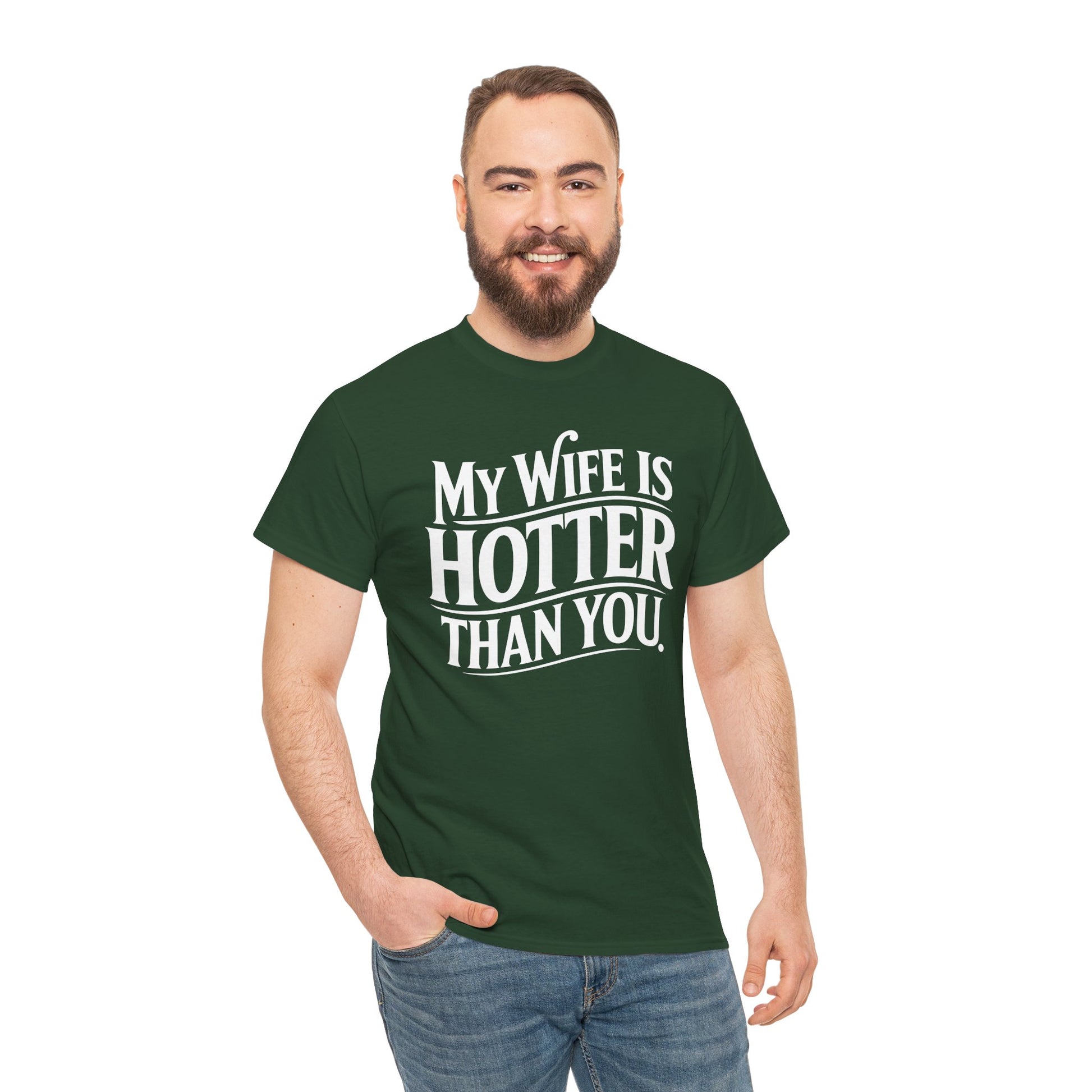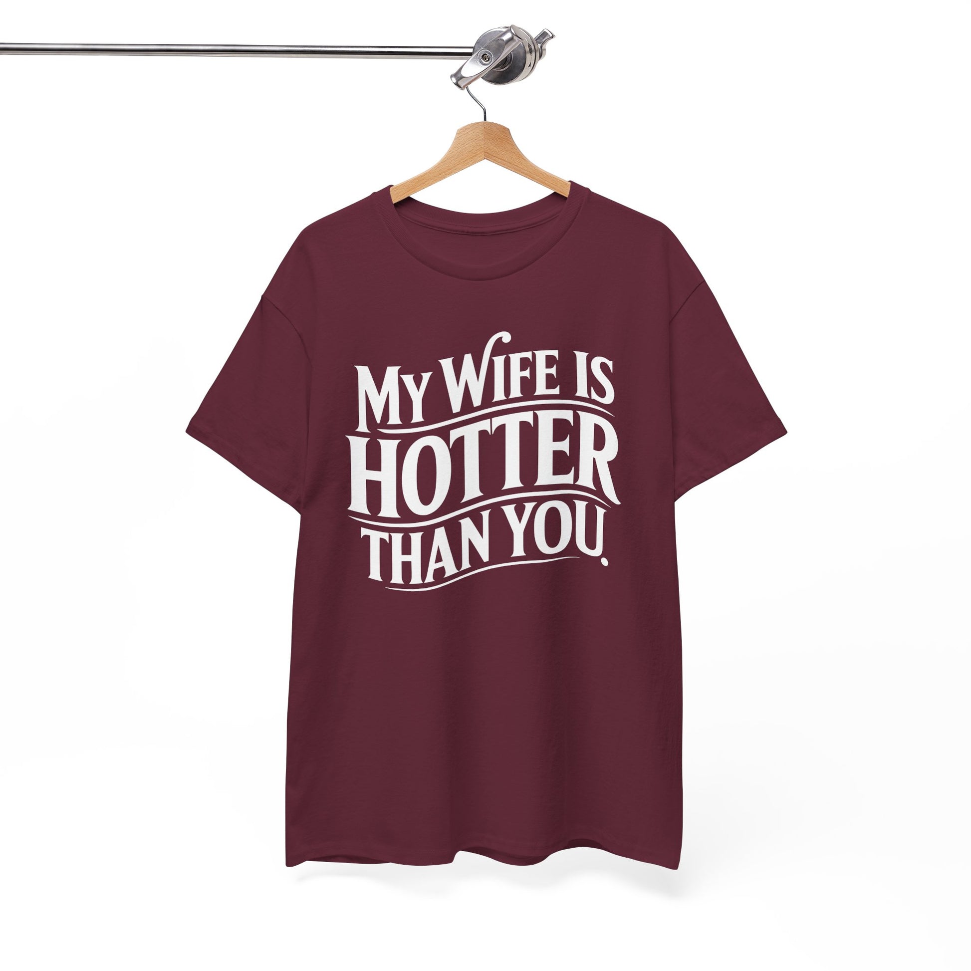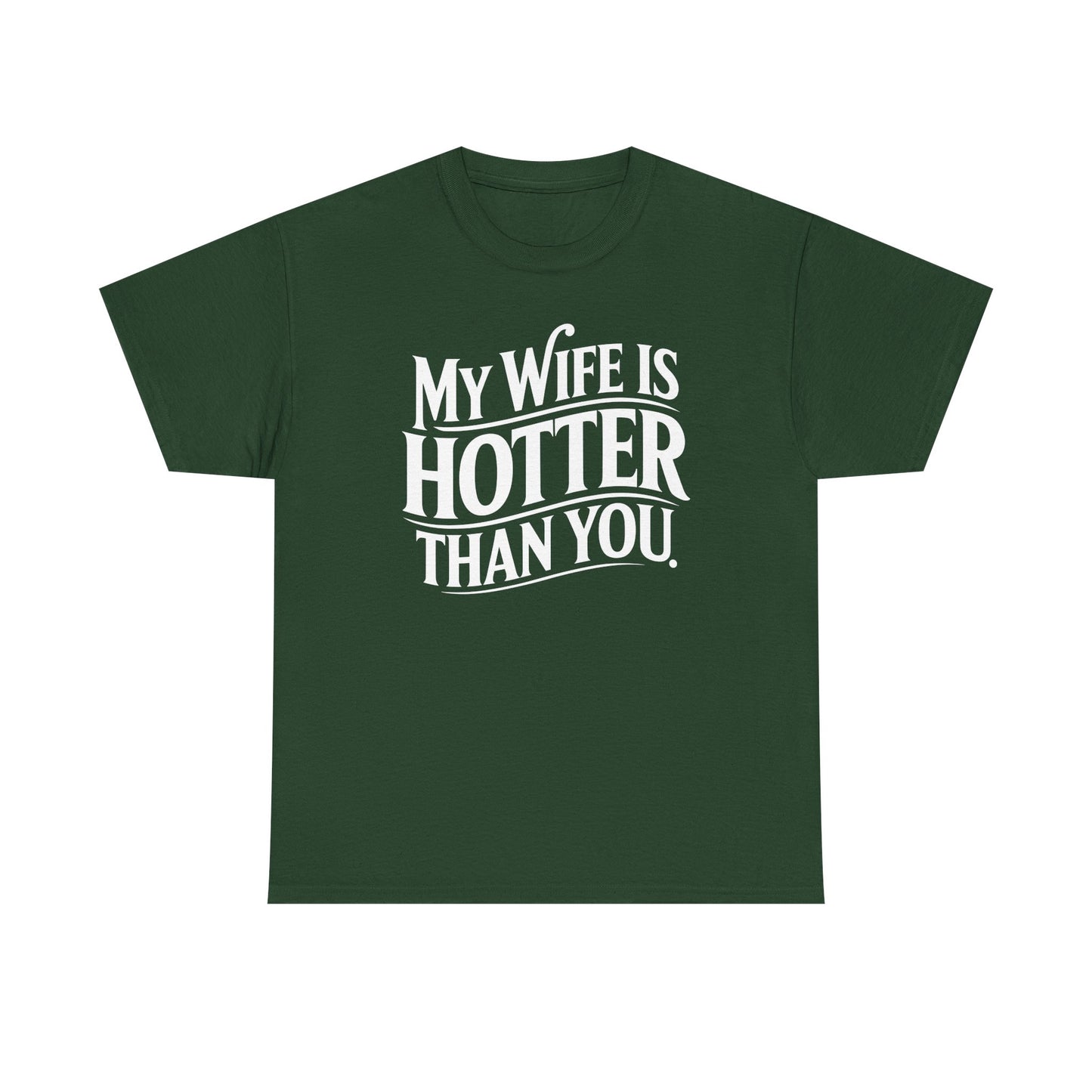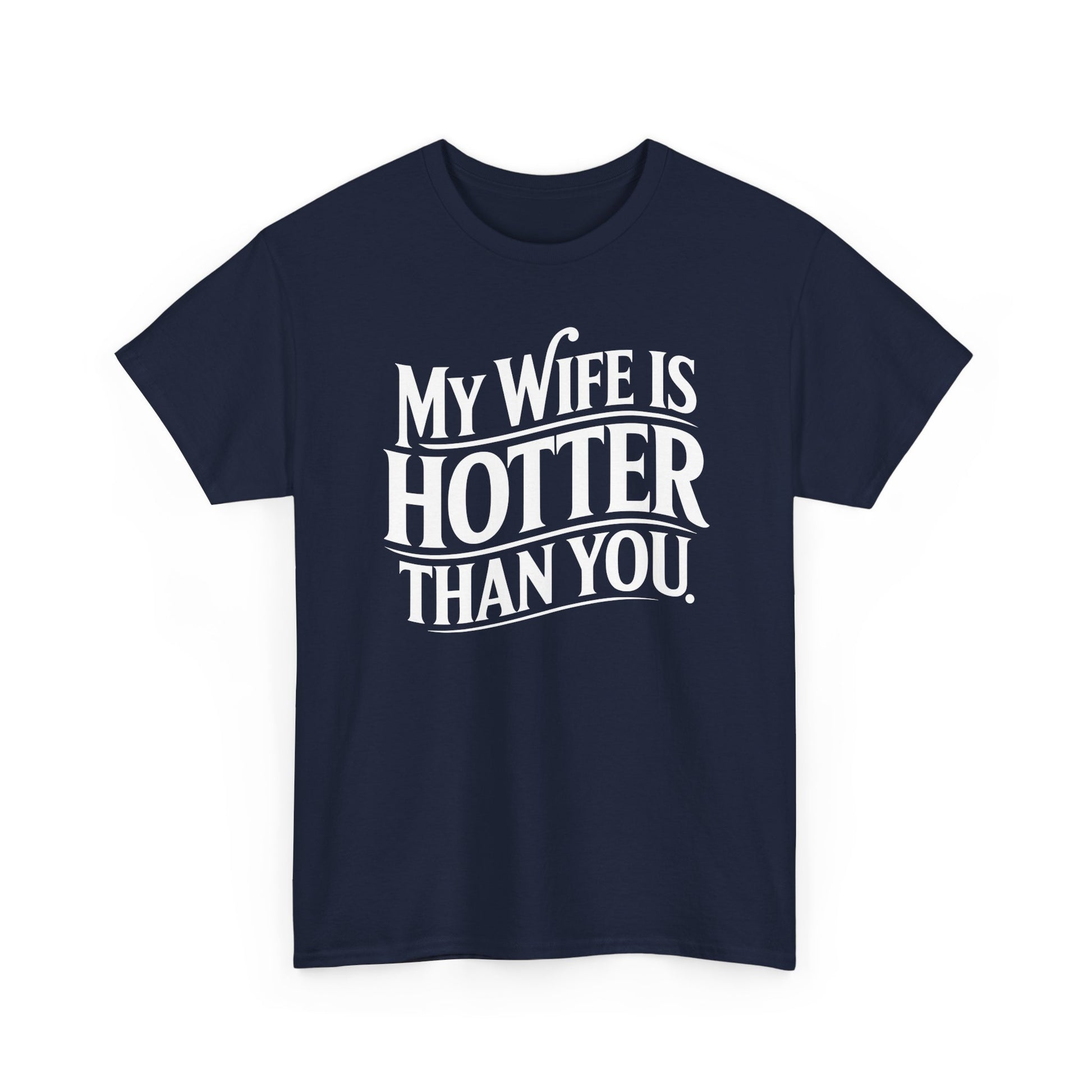 · Bold & Sarcastic Graphic Design: Features the phrase “My Wife Is Hotter Than You” in clean, eye-catching typography—guaranteed to spark laughs, side-eyes, and maybe a few jealous glances.