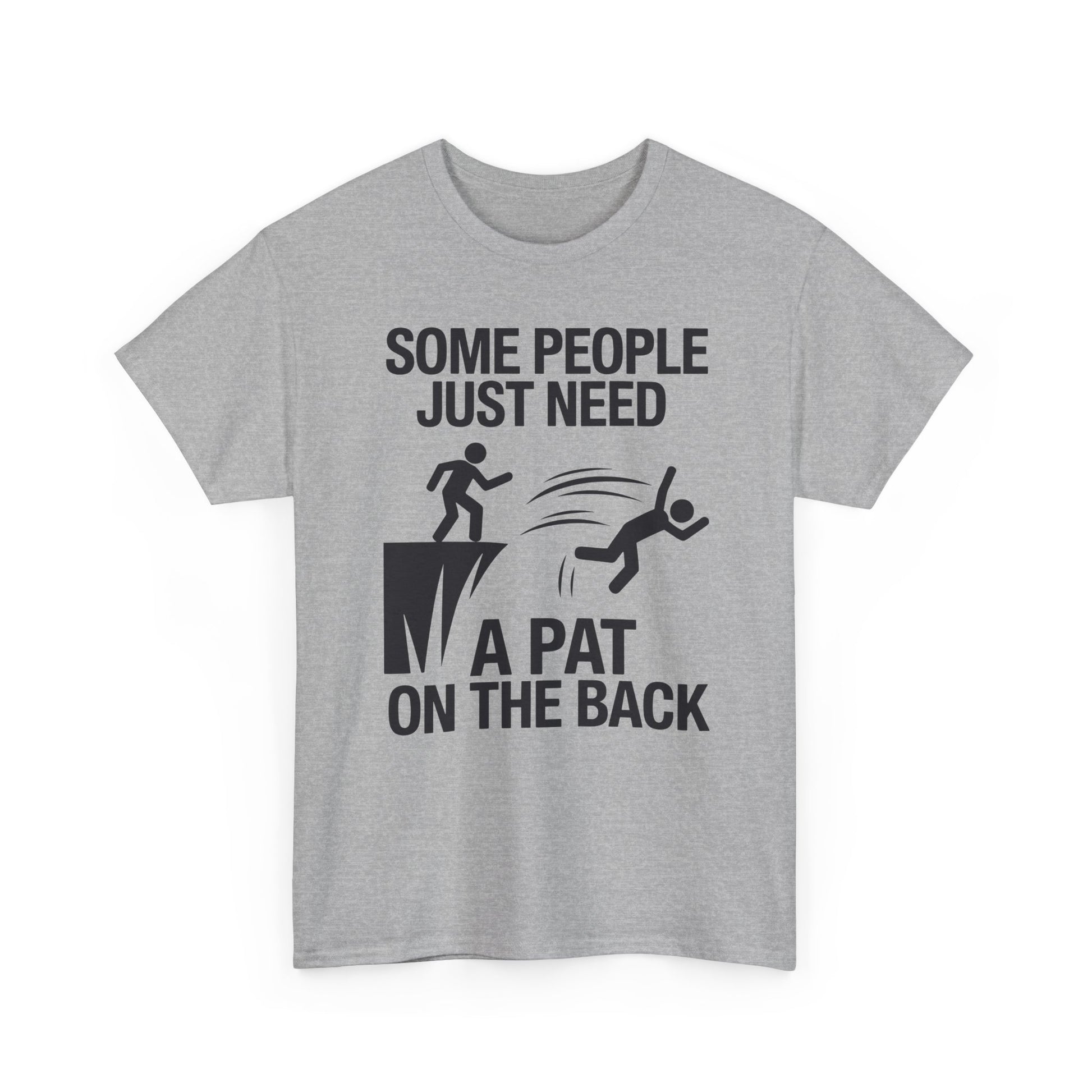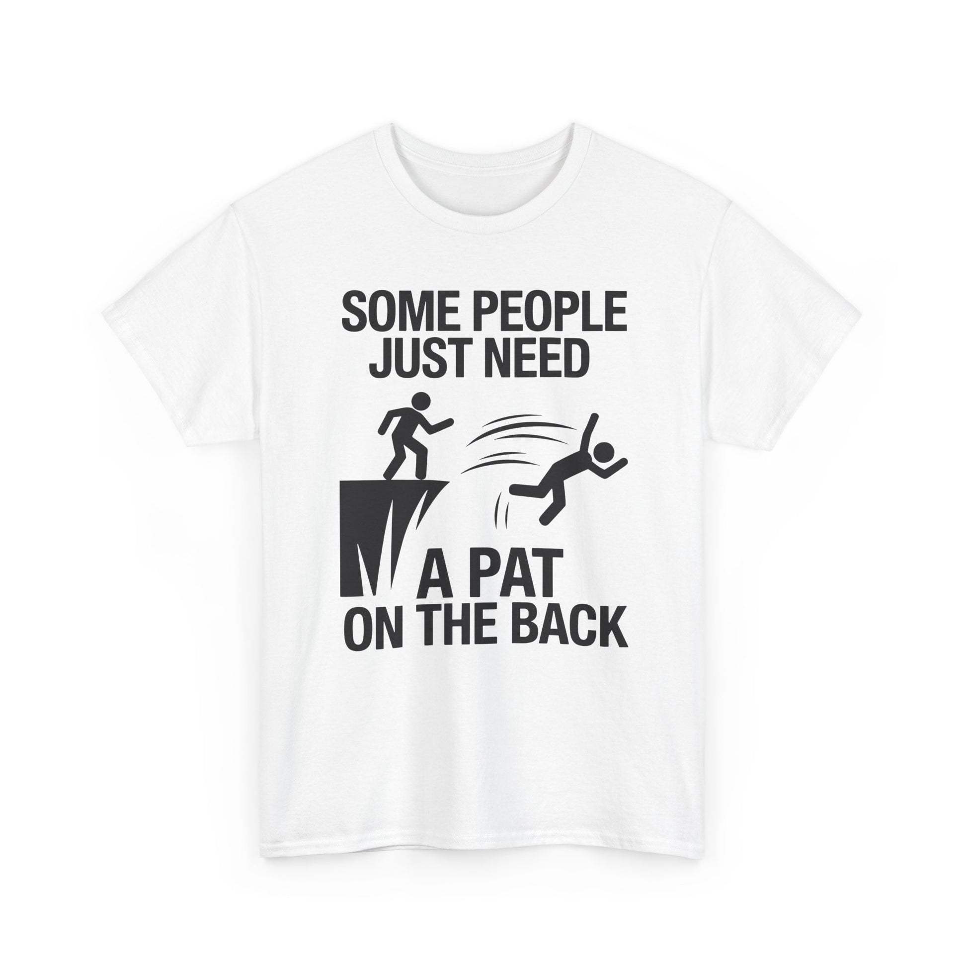 The Funny “Pat On The Back” Sarcastic T-Shirt is your wearable punchline for those moments when words just aren’t enough. Featuring a hilariously dark graphic of a literal push off a cliff, this tee is perfect for anyone who thrives on sarcasm, irony, and unapologetic humor.