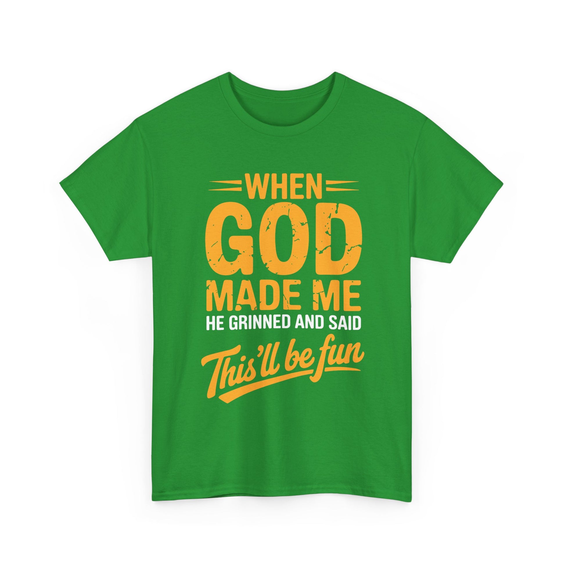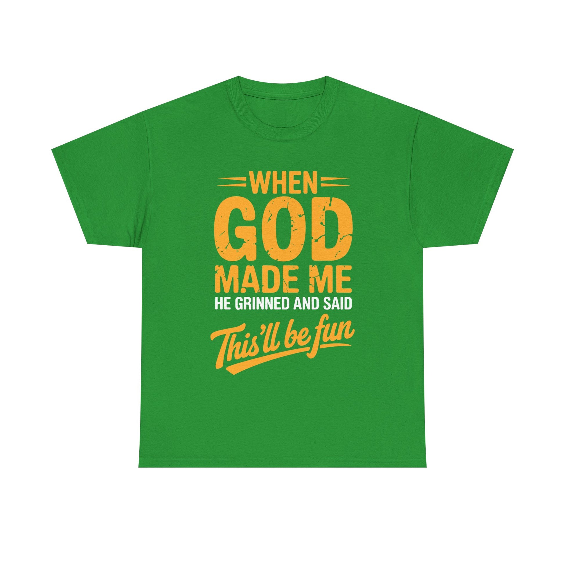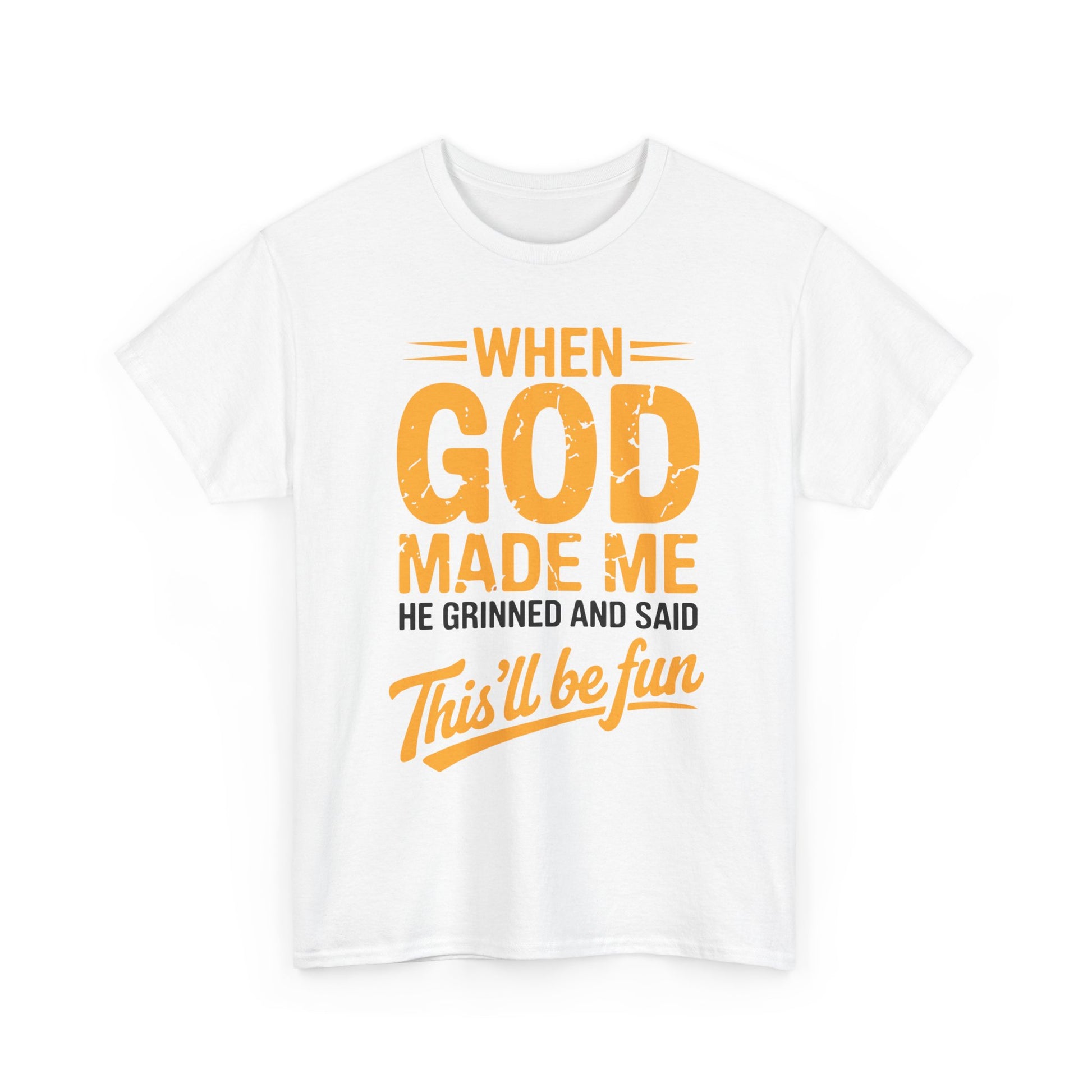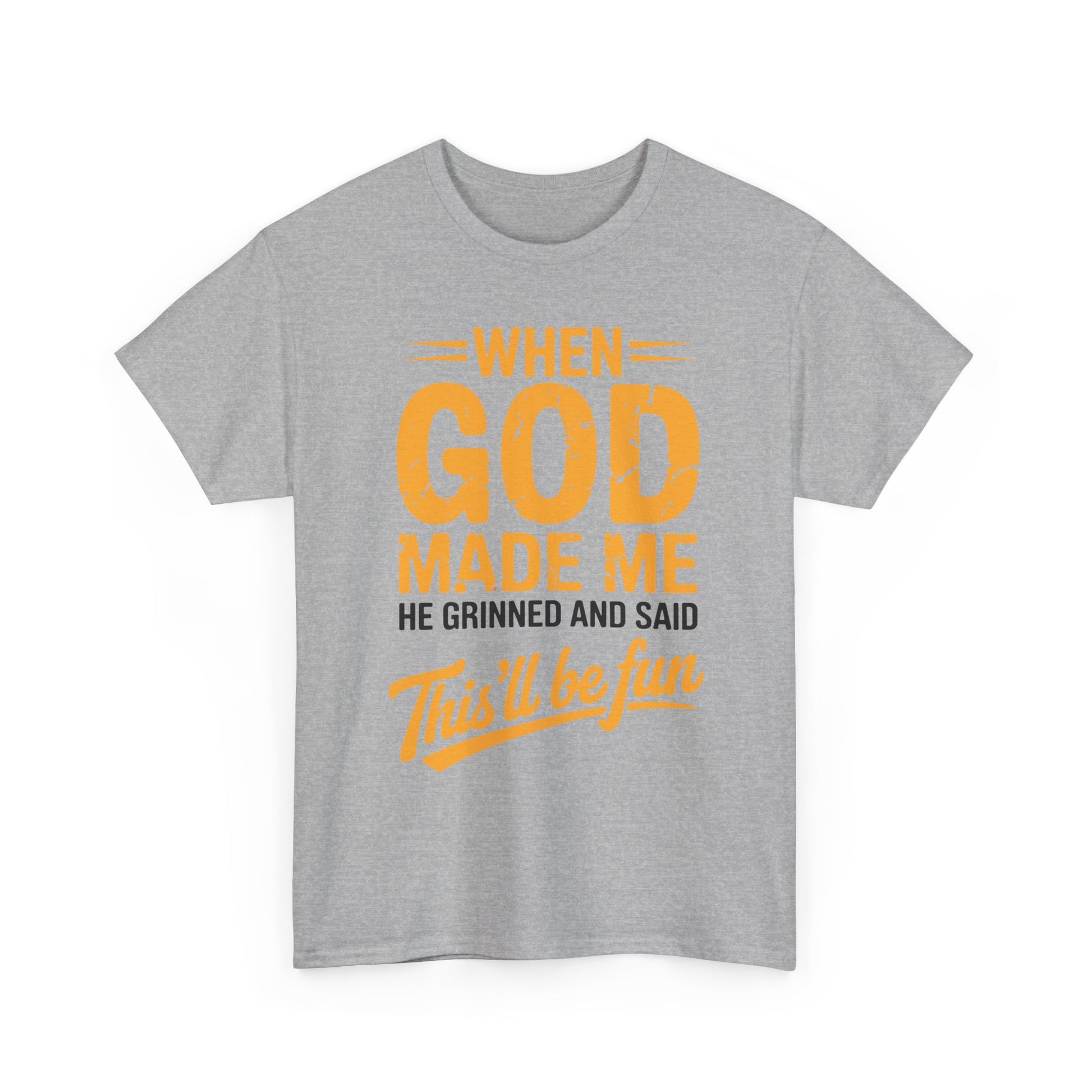 Ever feel like your personality was handcrafted for mischief, laughter, and a little divine chaos? This shirt says what everyone’s been thinking: “When God made me, He said… this’ll be fun.” Whether you’re the class clown, the office jokester, or just someone who embraces their quirks, this tee is your wearable punchline.