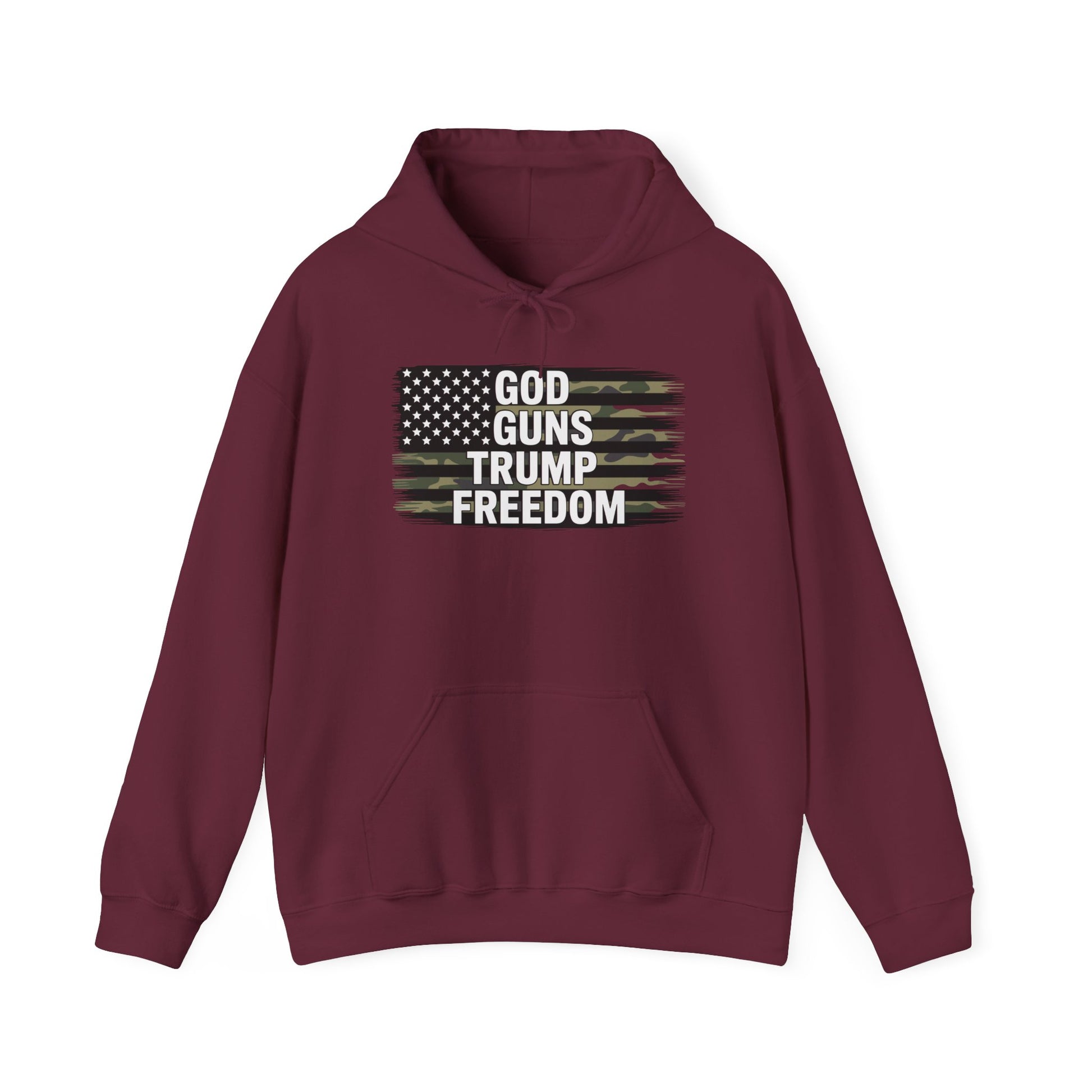God Guns Trump Freedom Funny Camouflage Pro Gun USA Flag Hoodie