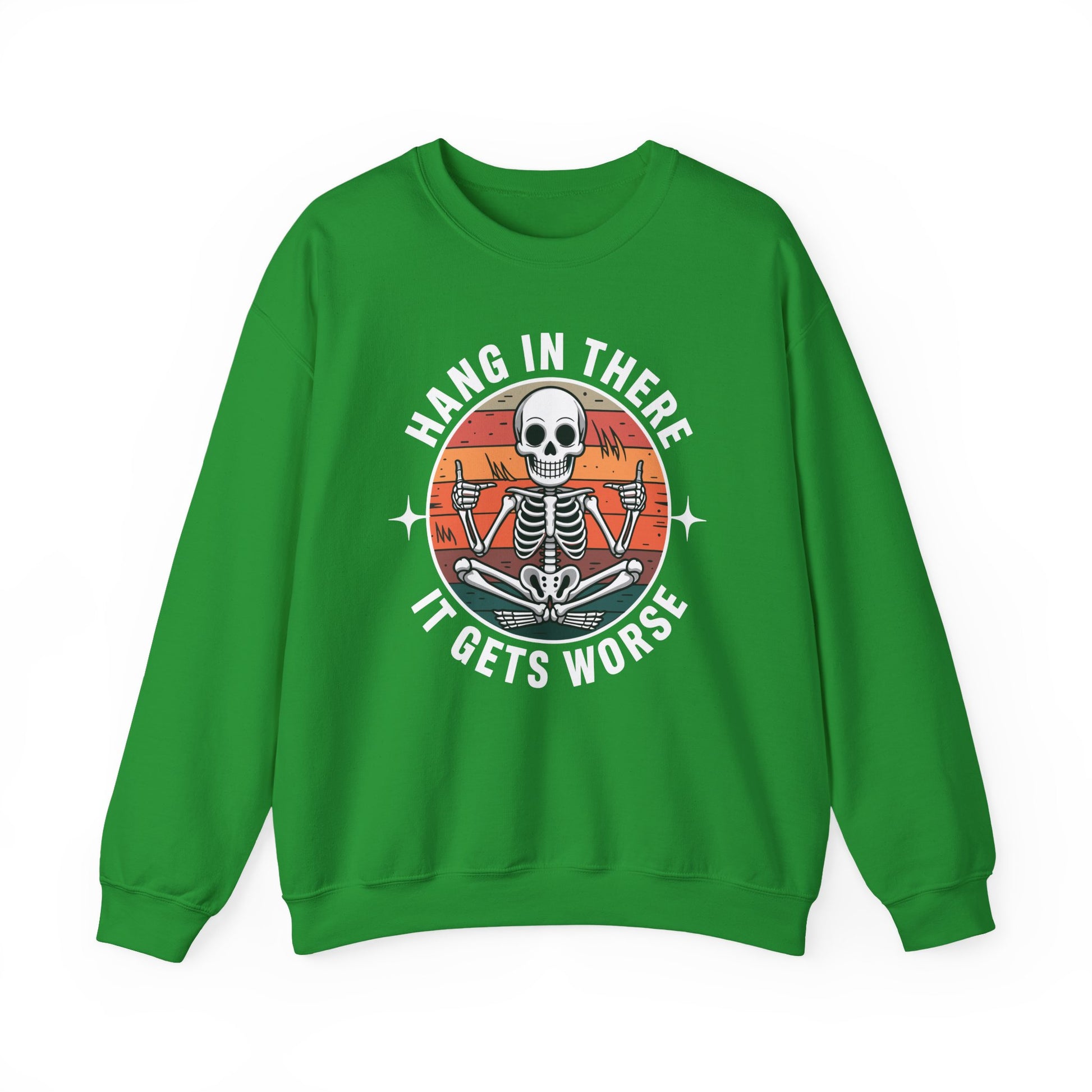 Hang In There It Gets Worse Sarcastic skeleton Flames Sweatshirt