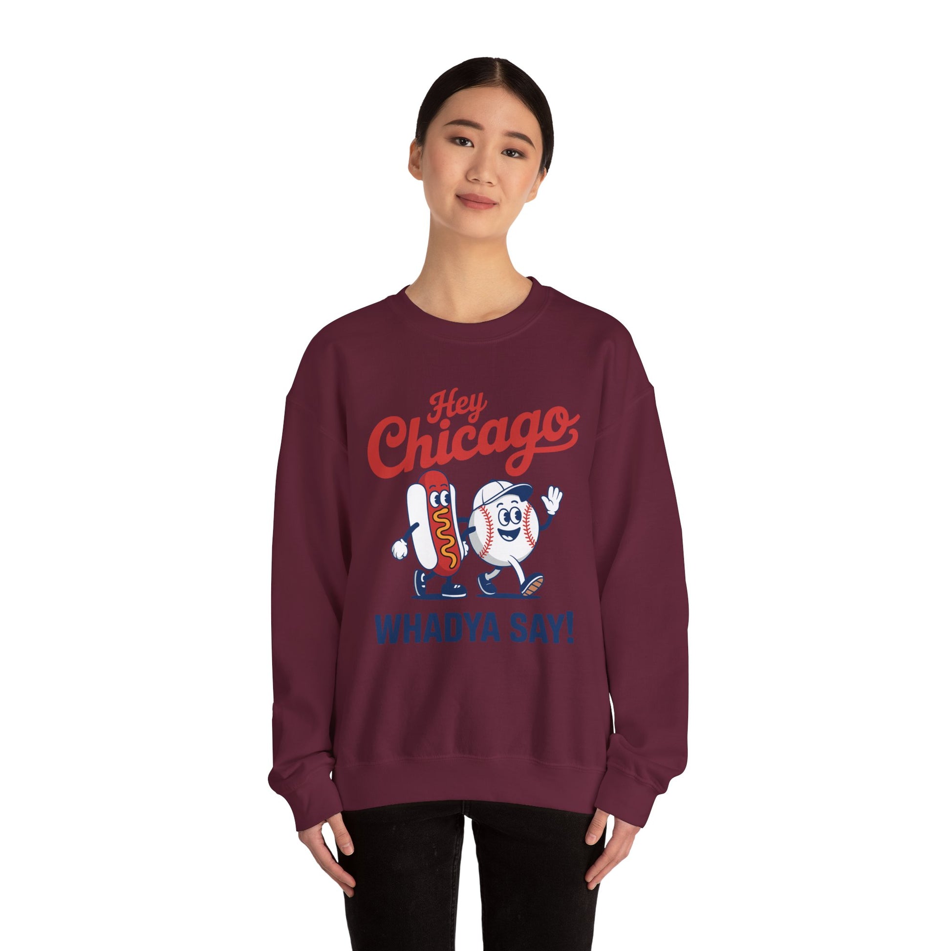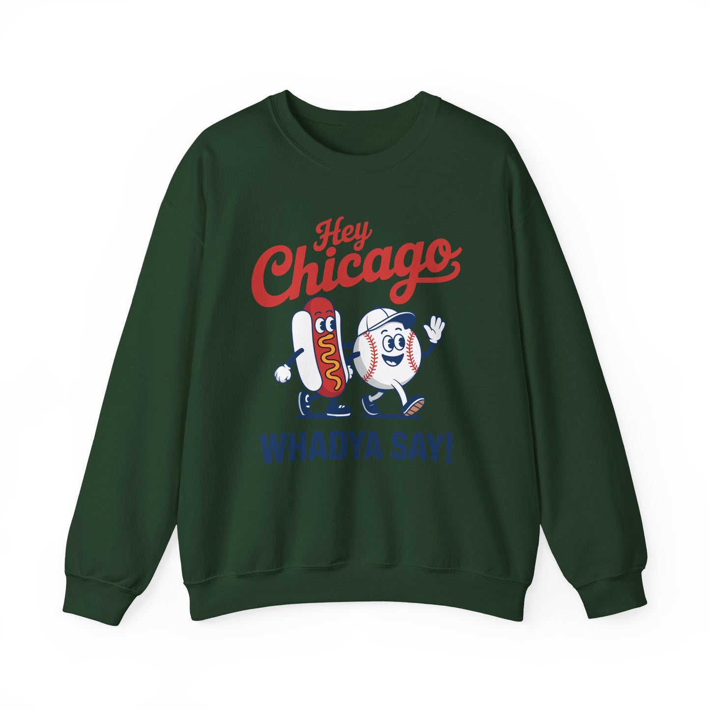 Hey Chicago Whadya Say Baseball and Hot Dog 4th of July Men Women Sweatshirt