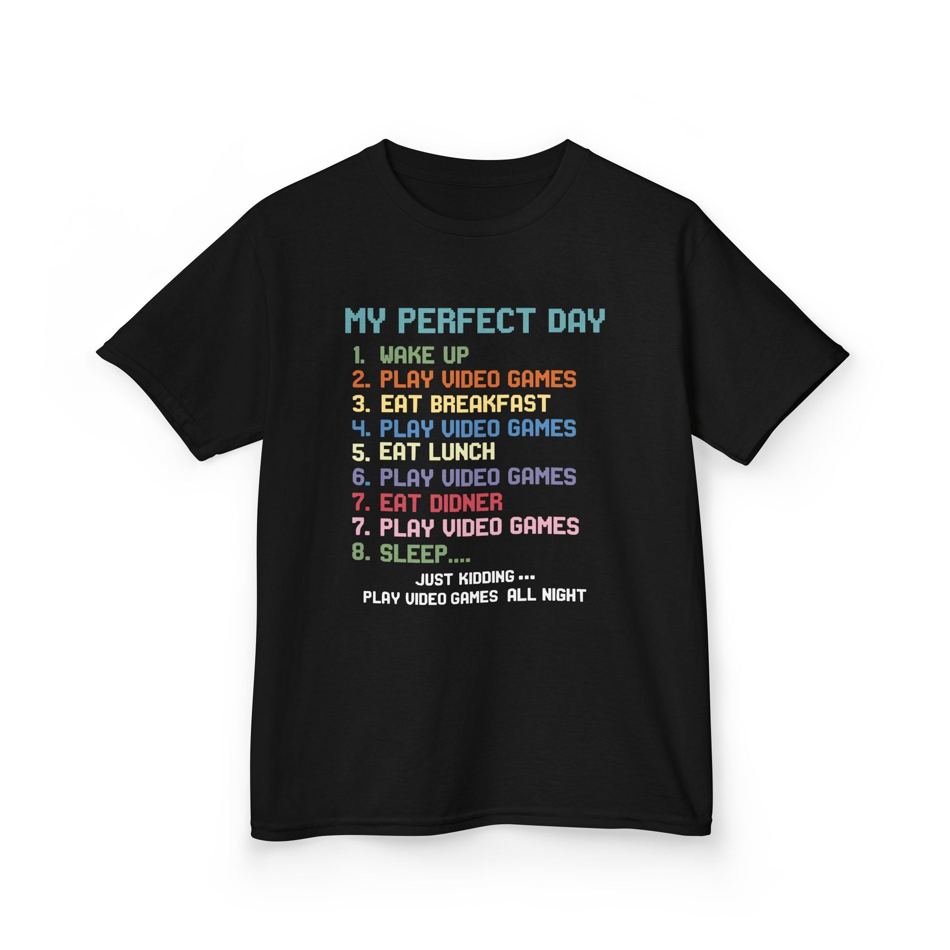 My Perfect Day Play Video Games Funny Gamer Kids T-Shirt
