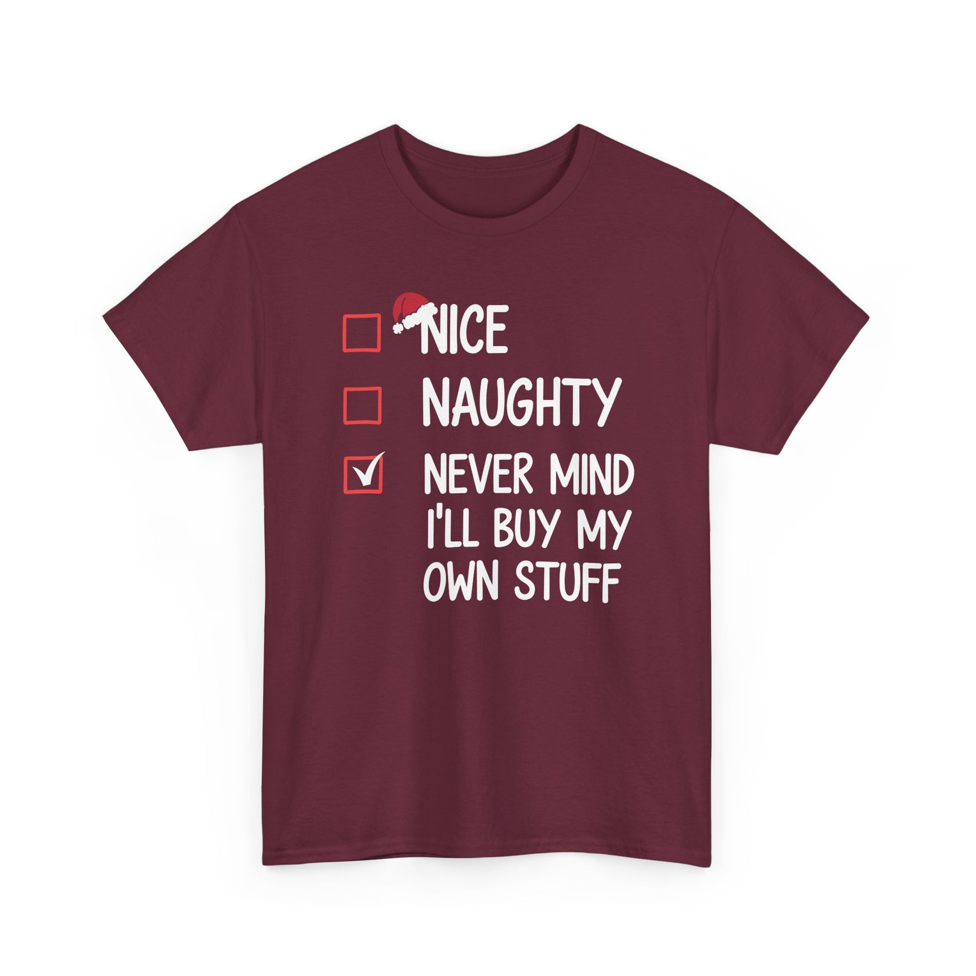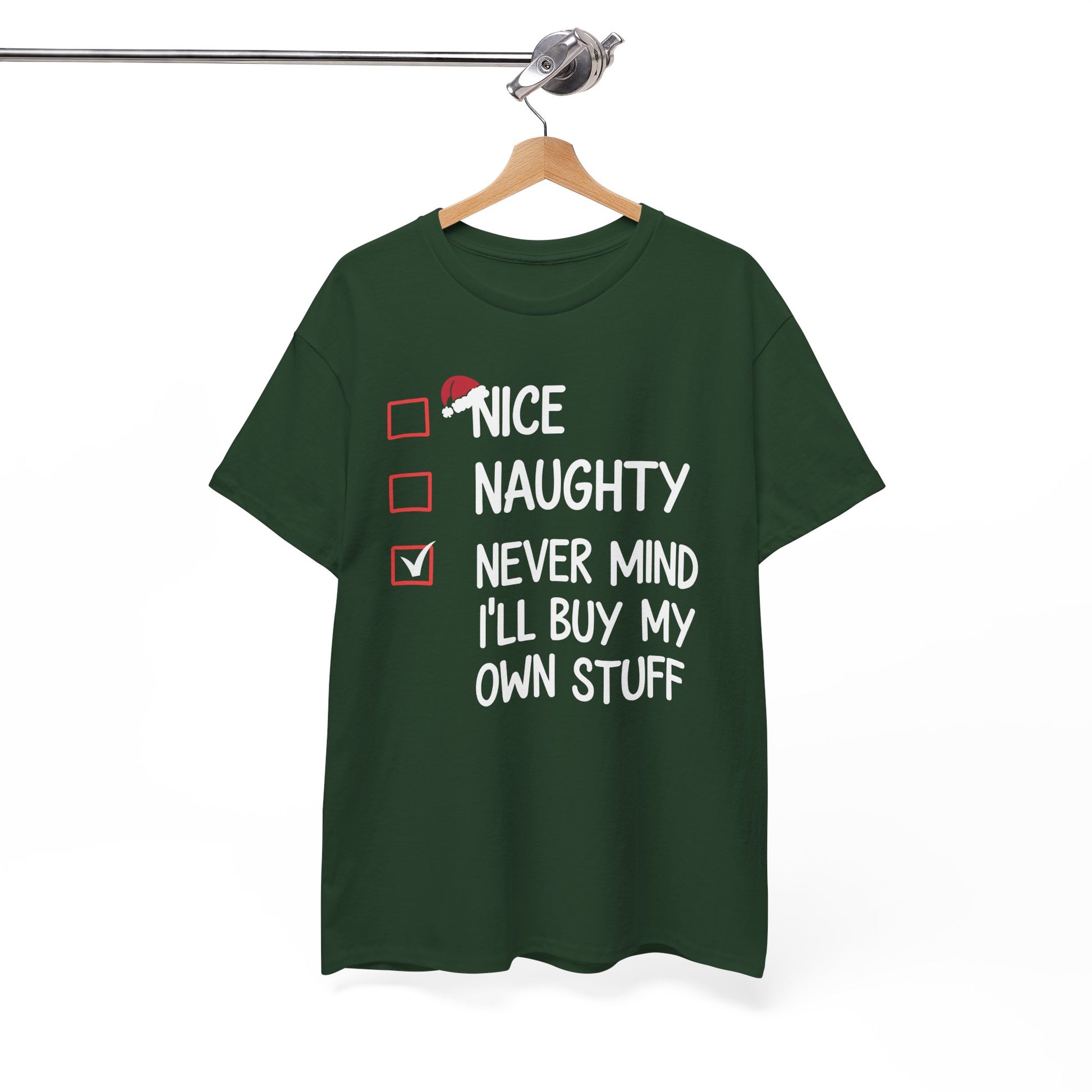 Nice Naughty Never Mind I'll Buy My Own Stuff Christmas List T-Shirt