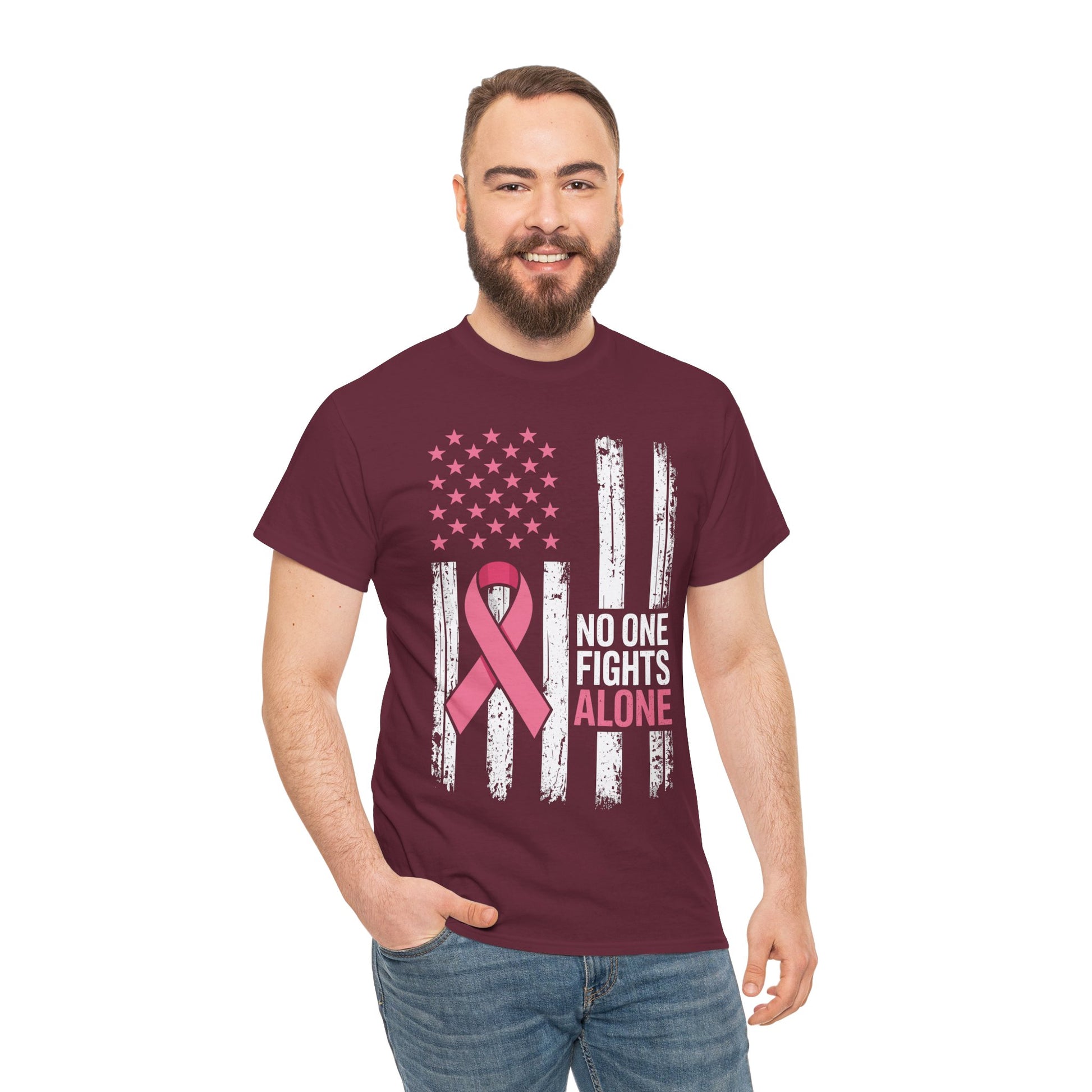 No One Fights Breast Cancer Alone American Flag Pink Ribbon T-Shirt