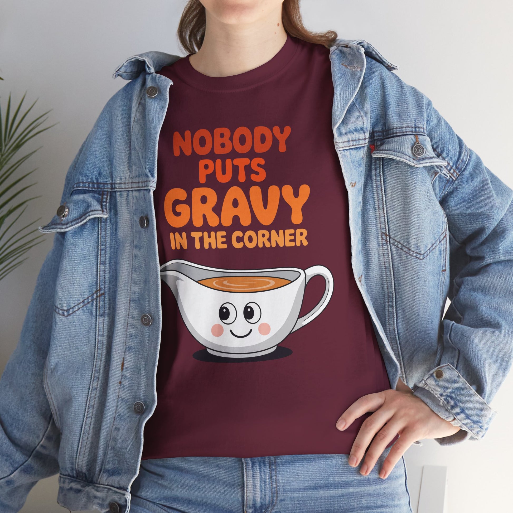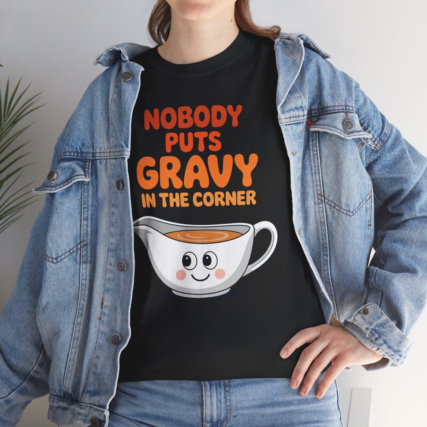 Nobody Puts Gravy in the Corner Funny Cute Thanksgiving Food T-Shirt