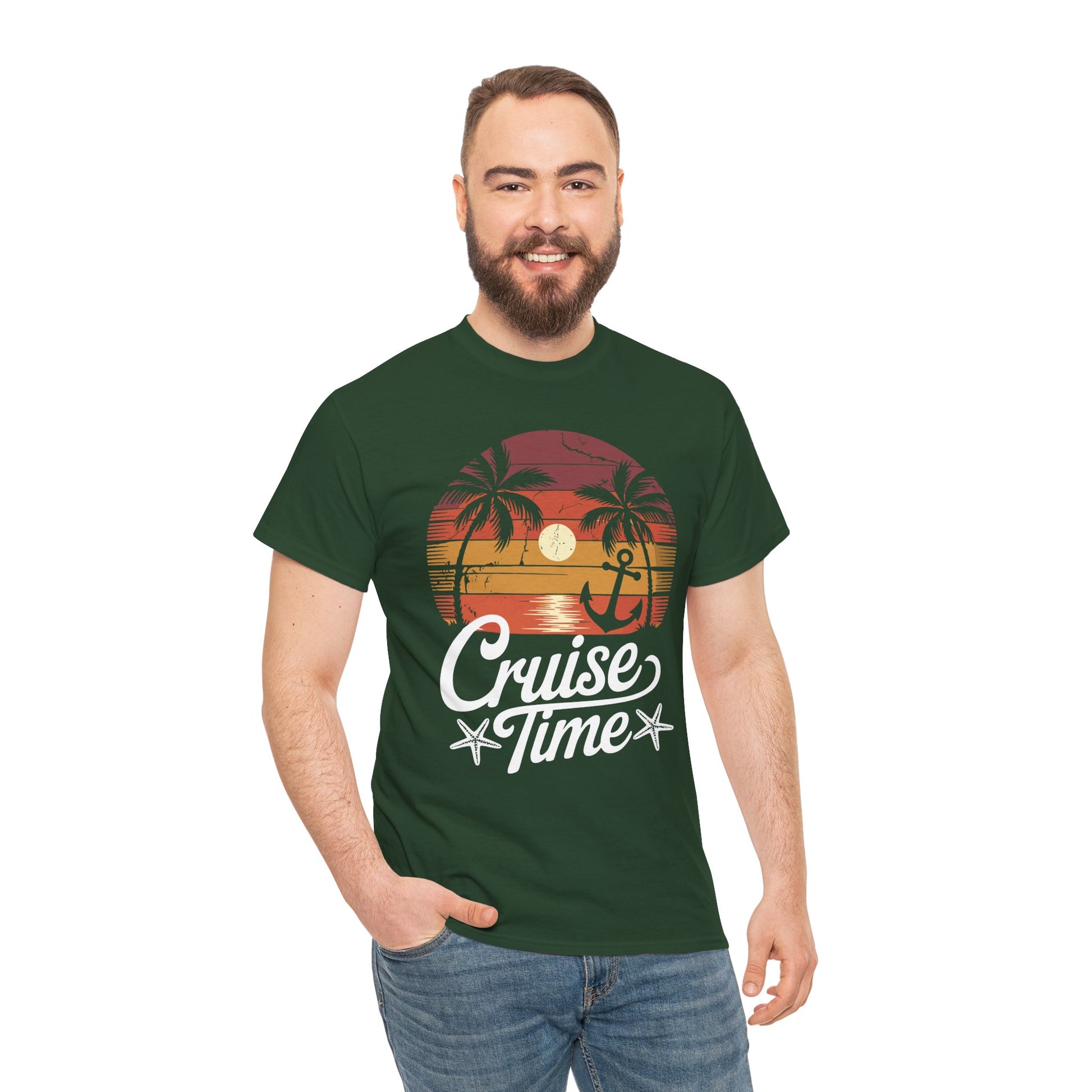 On Cruise Time Coconut Tree Graphic Summer Vacation Cruising T-shirt