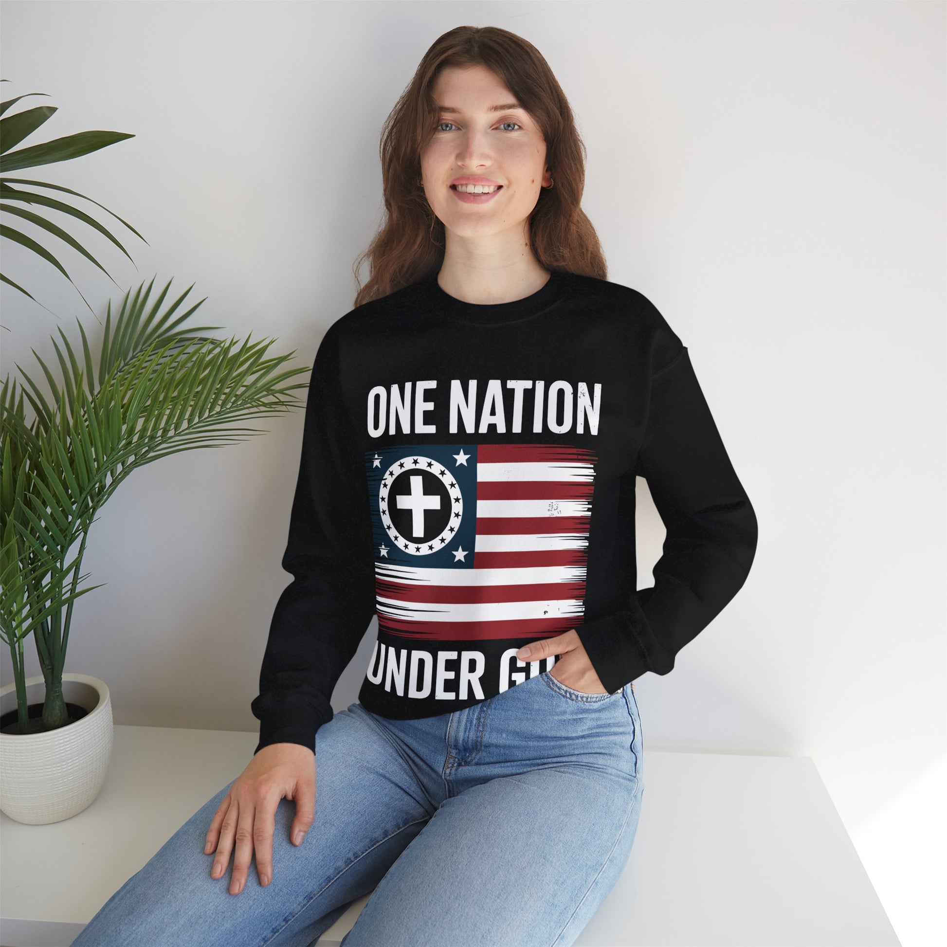 One Nation Under God Flag 4th Of July Patriotic Christian Sweatshirt