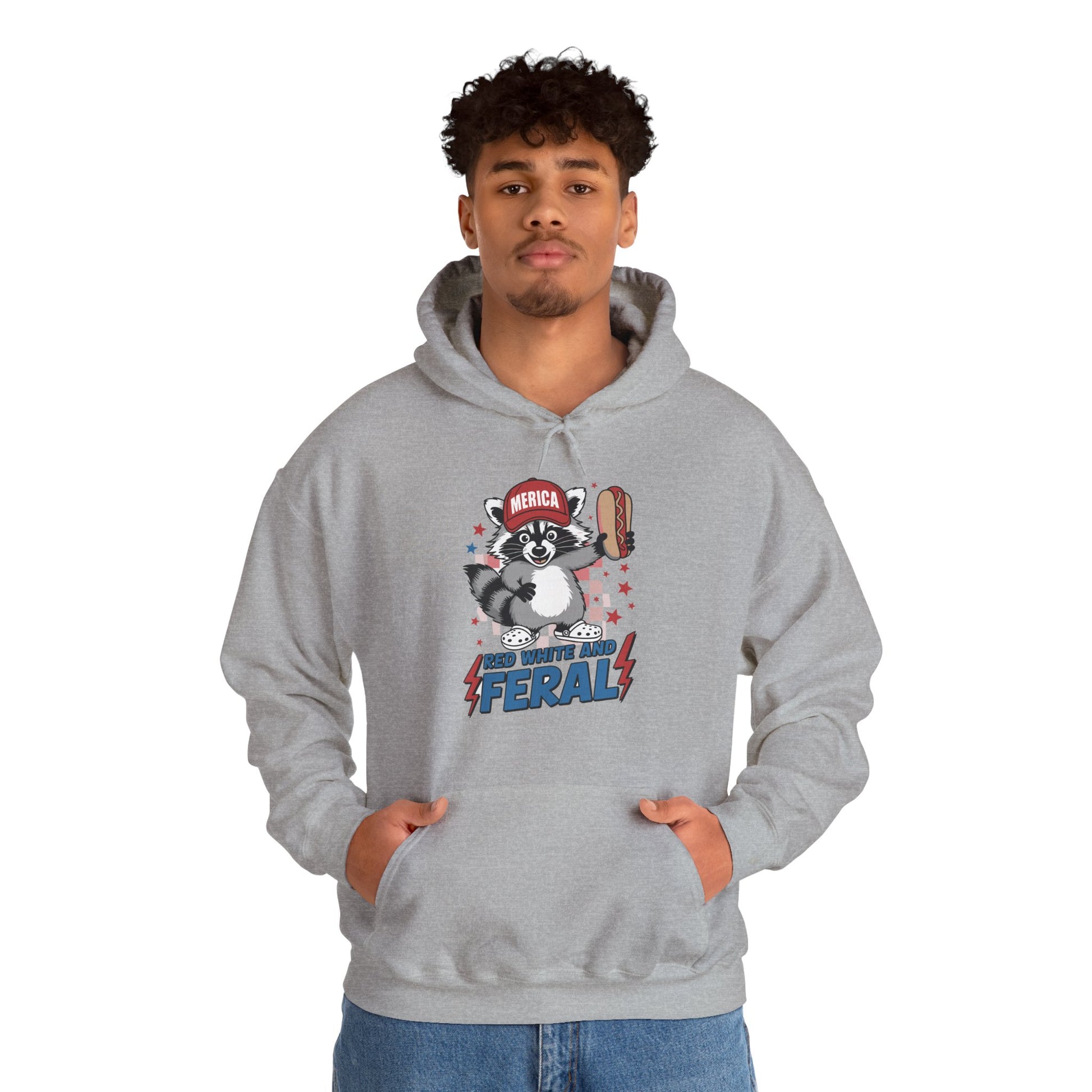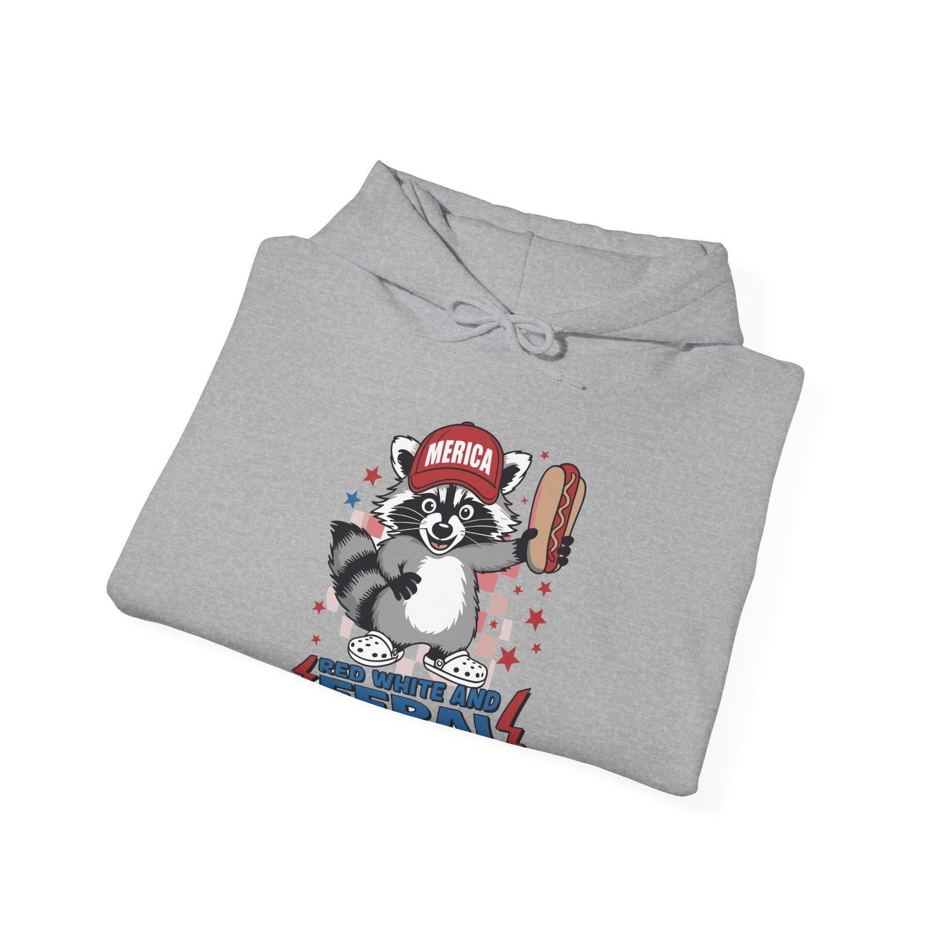 Red White And Feral Raccoon 4th of July Saying Meme Hoodie