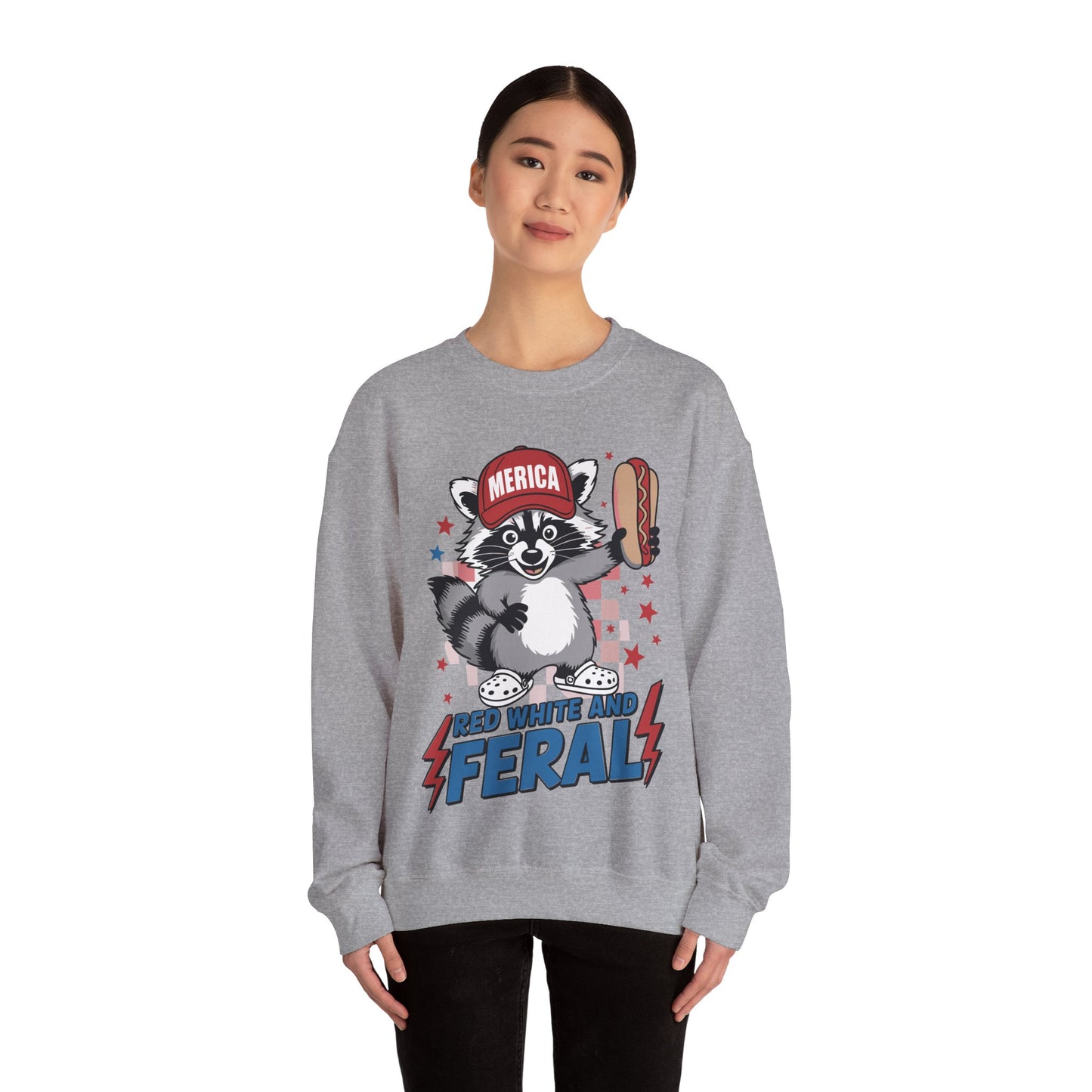 Ever feel like your inner raccoon comes out when the fireworks start? This sweatshirt is for the feral-hearted patriots who celebrate Independence Day with unapologetic energy and a side of meme-worthy madness. Featuring a wild raccoon and a bold “Red White And Feral” slogan, this pullover is perfect for cookouts, parades, and chaotic backyard antics.
