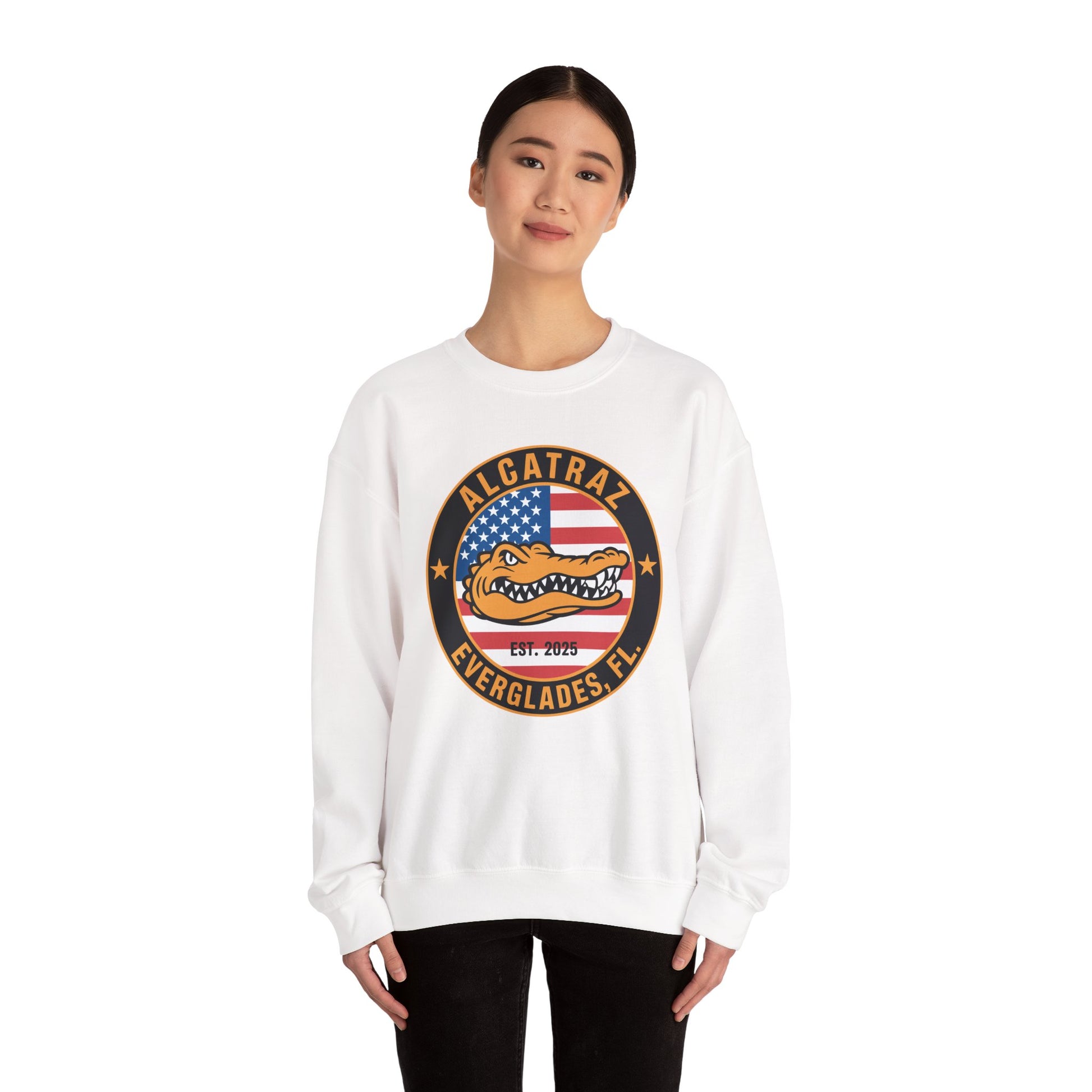 Solves the “I Want Something Unique to Wear” Problem Tired of plain sweatshirts that say nothing about you? This one’s got edge, humor, and a design that makes people stop and ask, “Wait… Alcatraz in the Everglades?”