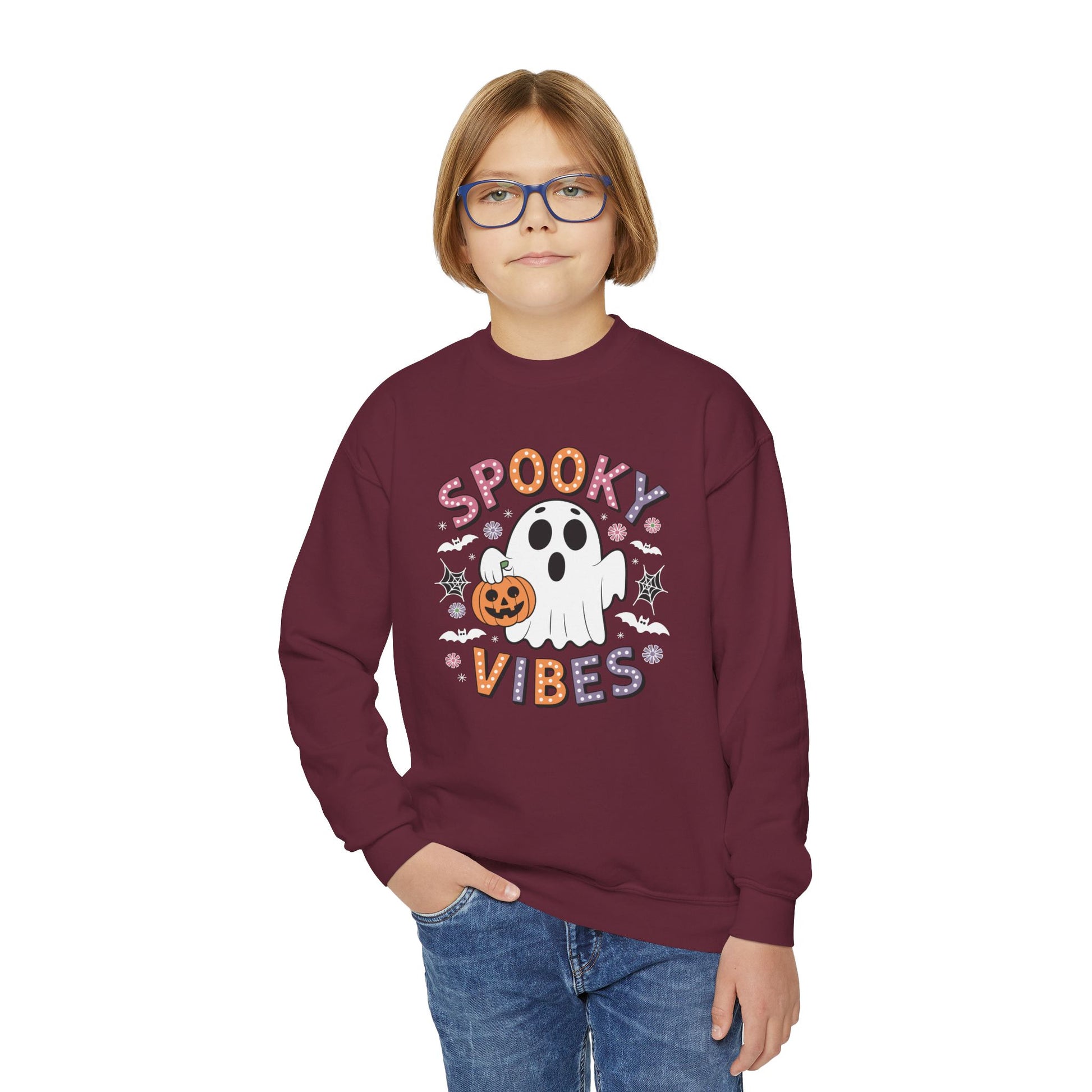 Spooky Vibes Ghost Retro Groovy Halloween Kids Sweatshirt