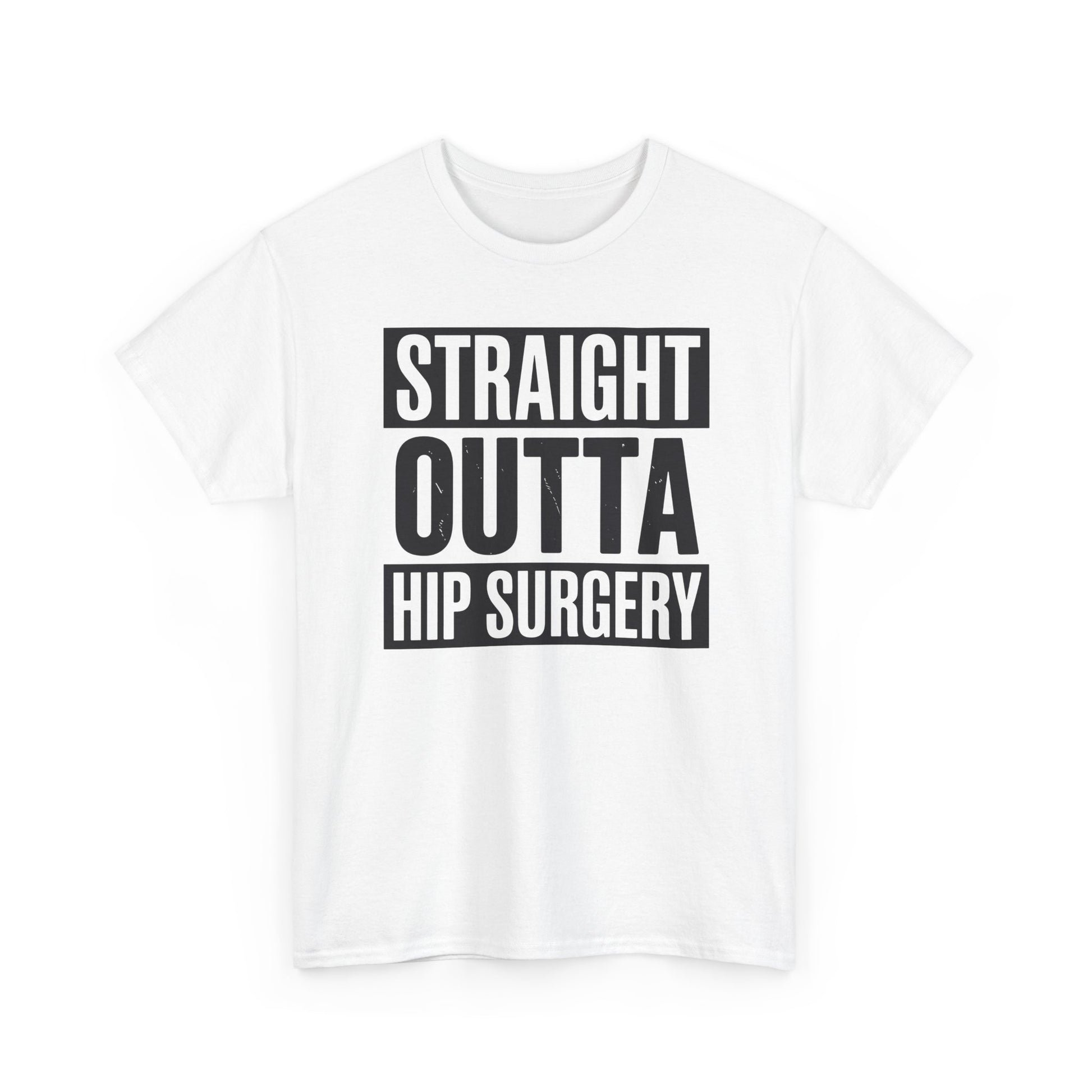 - Funny Recovery Design: Features bold “Straight Outta Hip Surgery” text in a classic layout—perfect for showing off your new joint with pride and a wink
