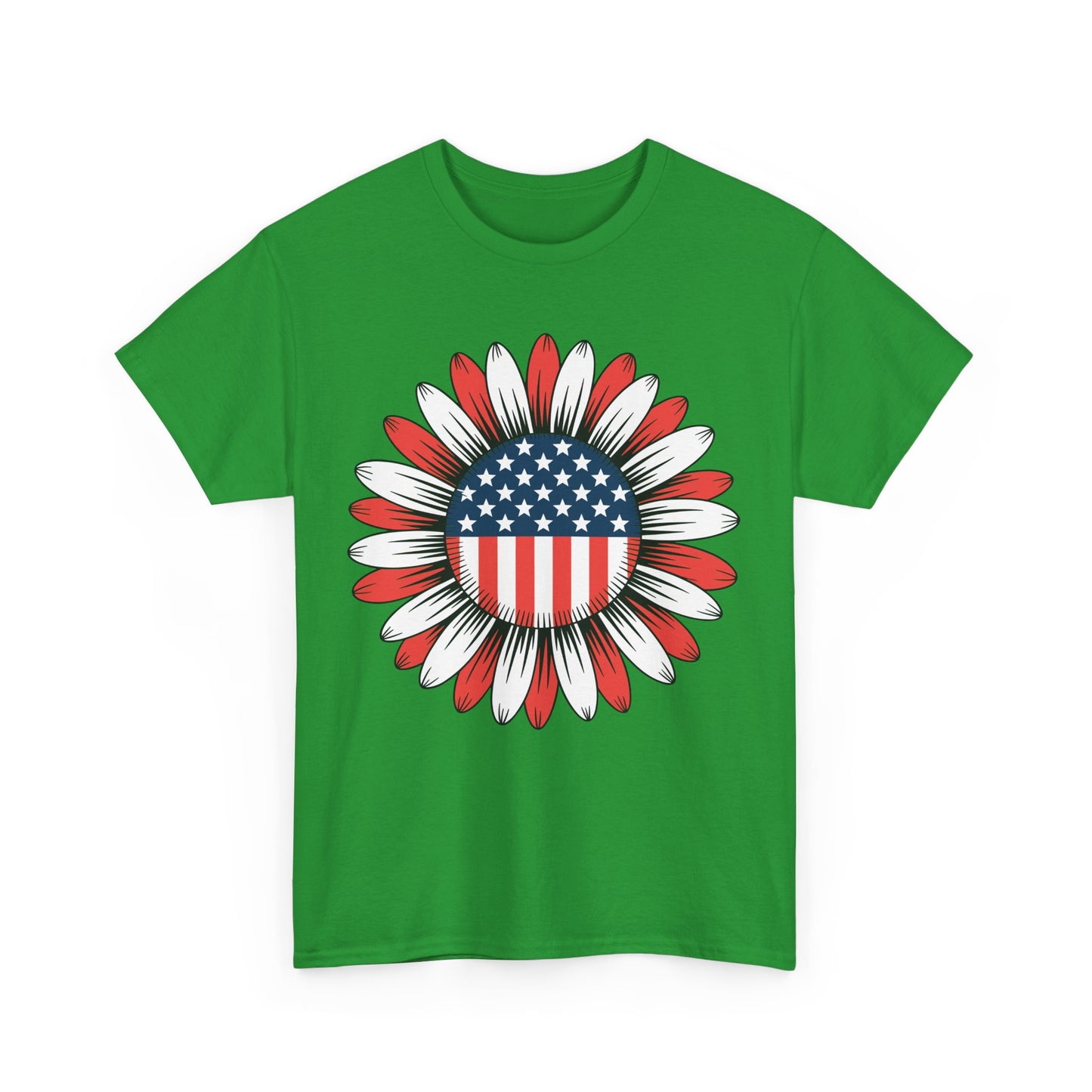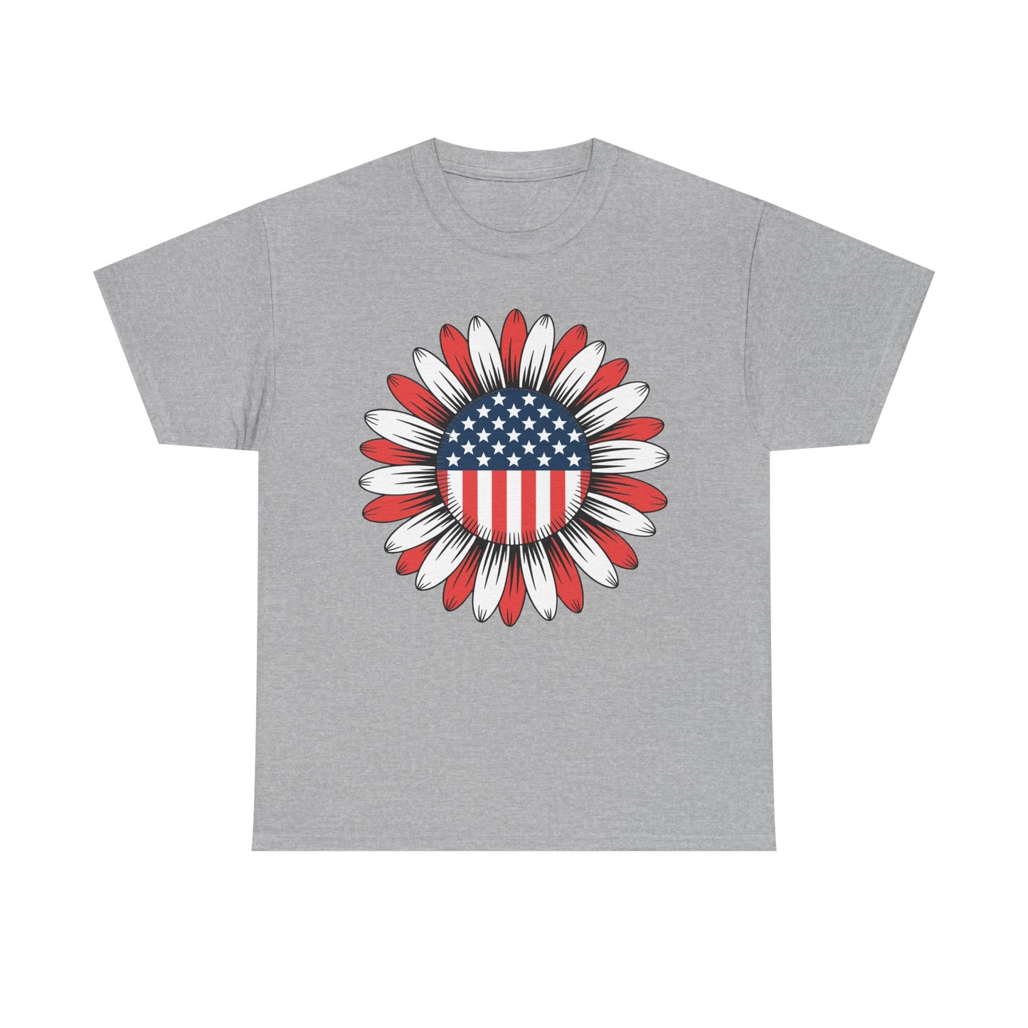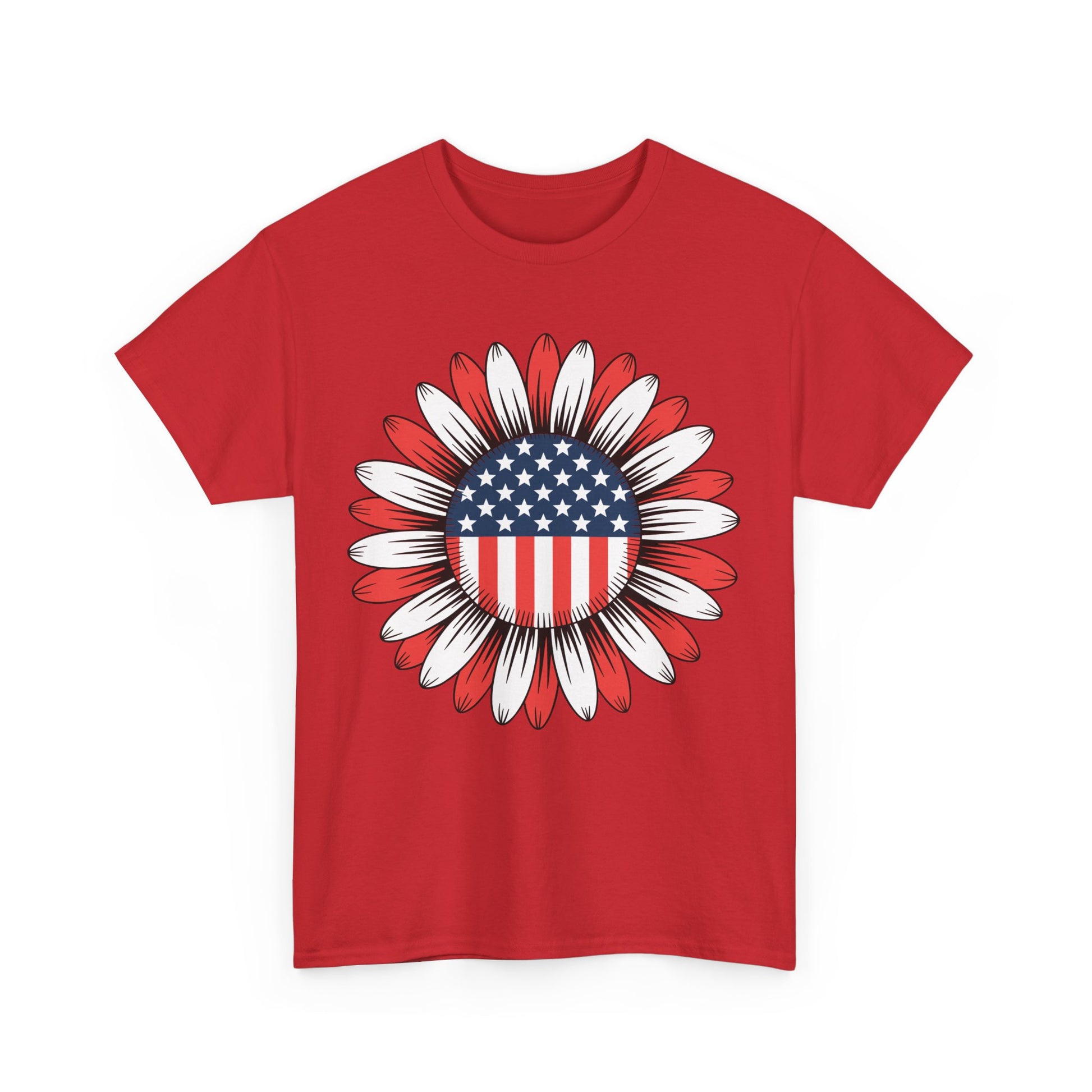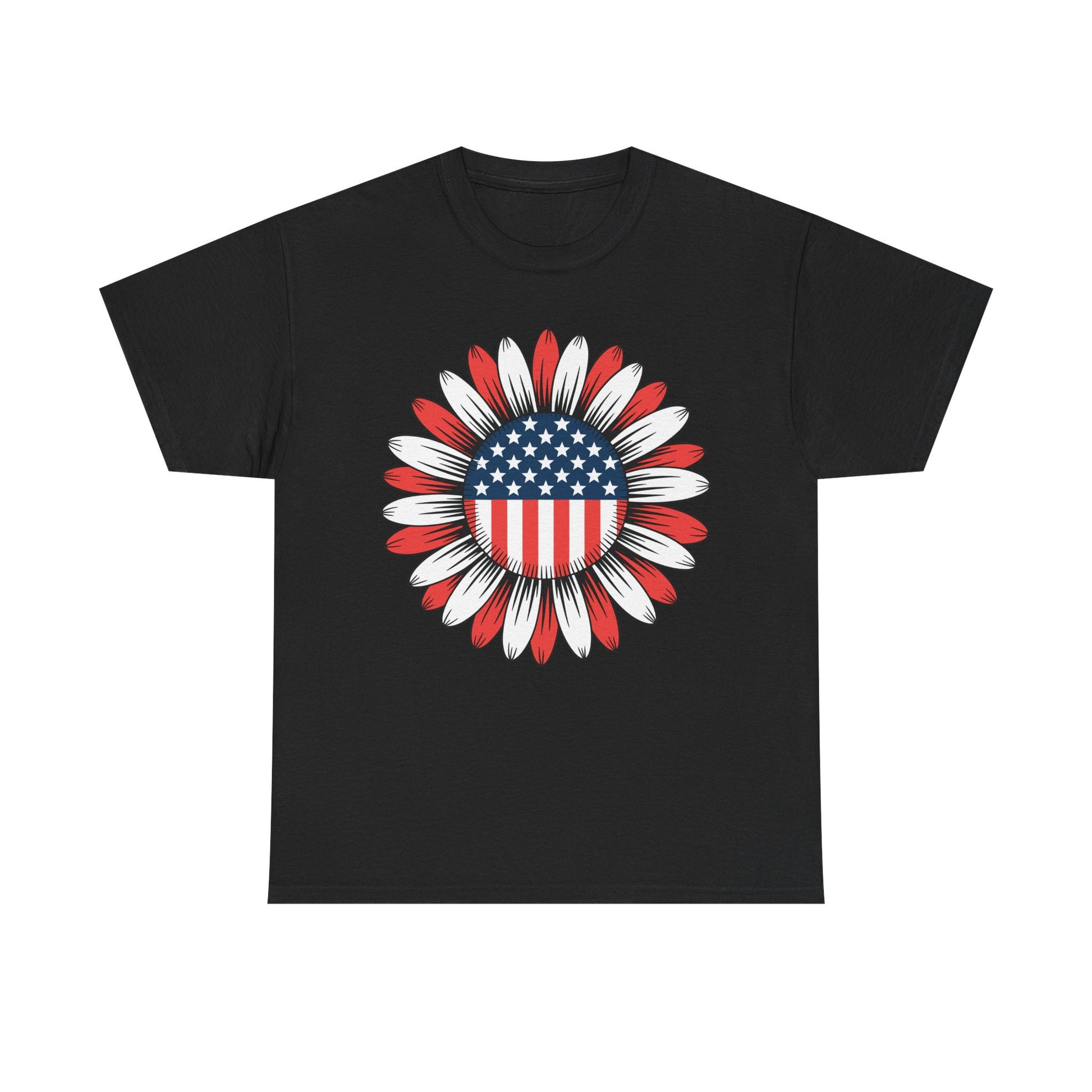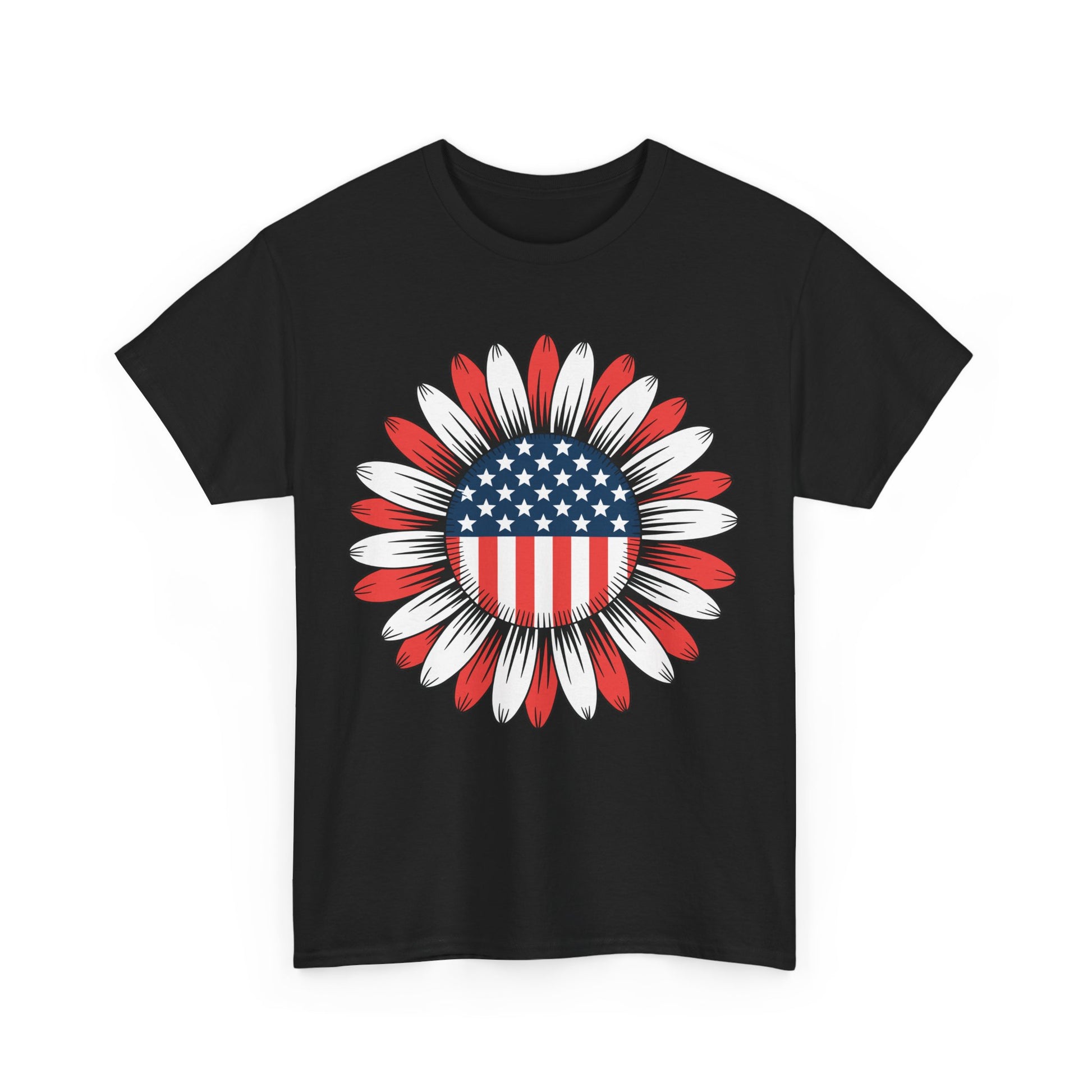 Designed for both men and women, this tee showcases a sunflower filled with stars and stripes a bold twist on the American flag that stands out at any July 4th party or parade. Made from soft, breathable cotton, it’s ideal for hot summer days and long nights watching fireworks. The unisex fit ensures flattering comfort for all body types.
