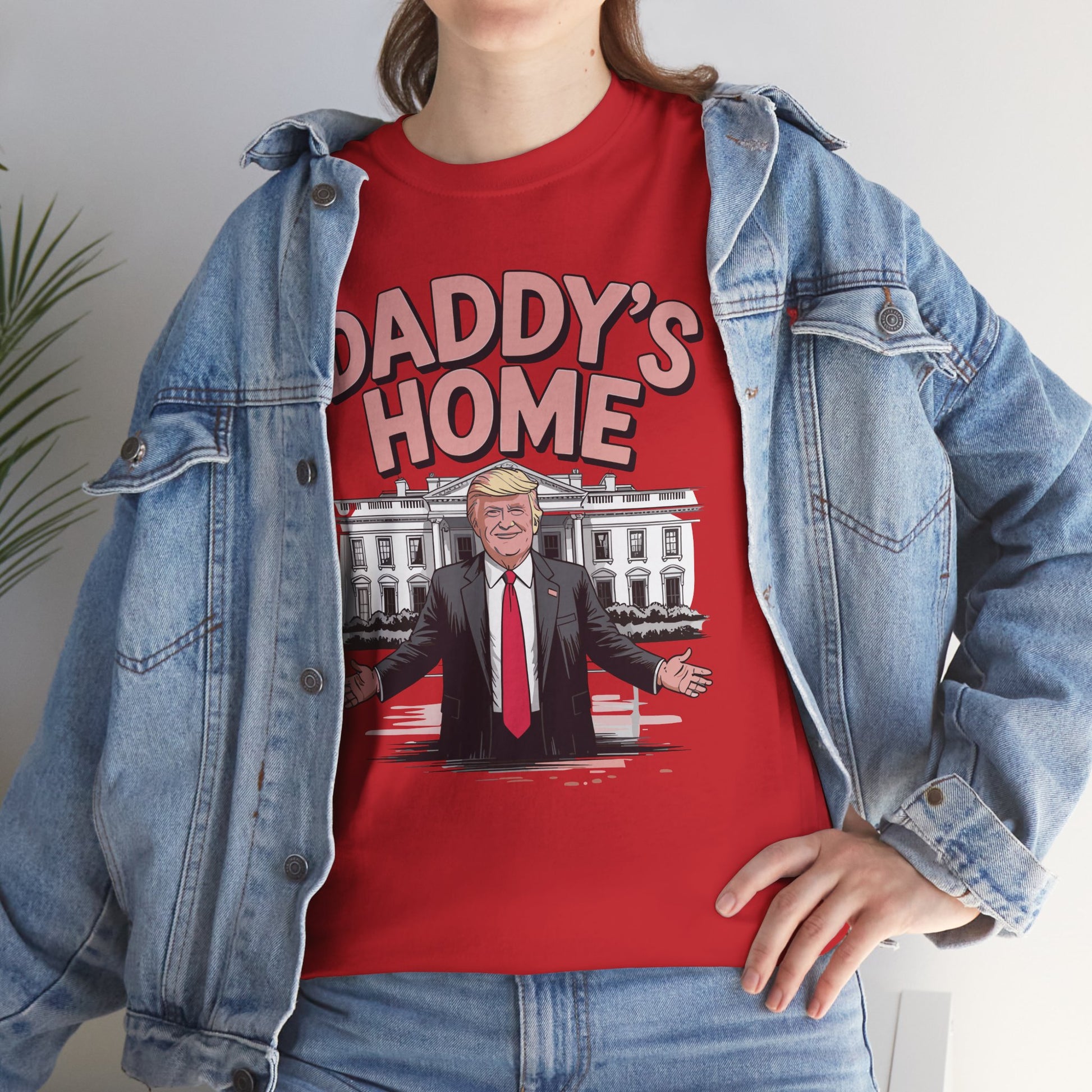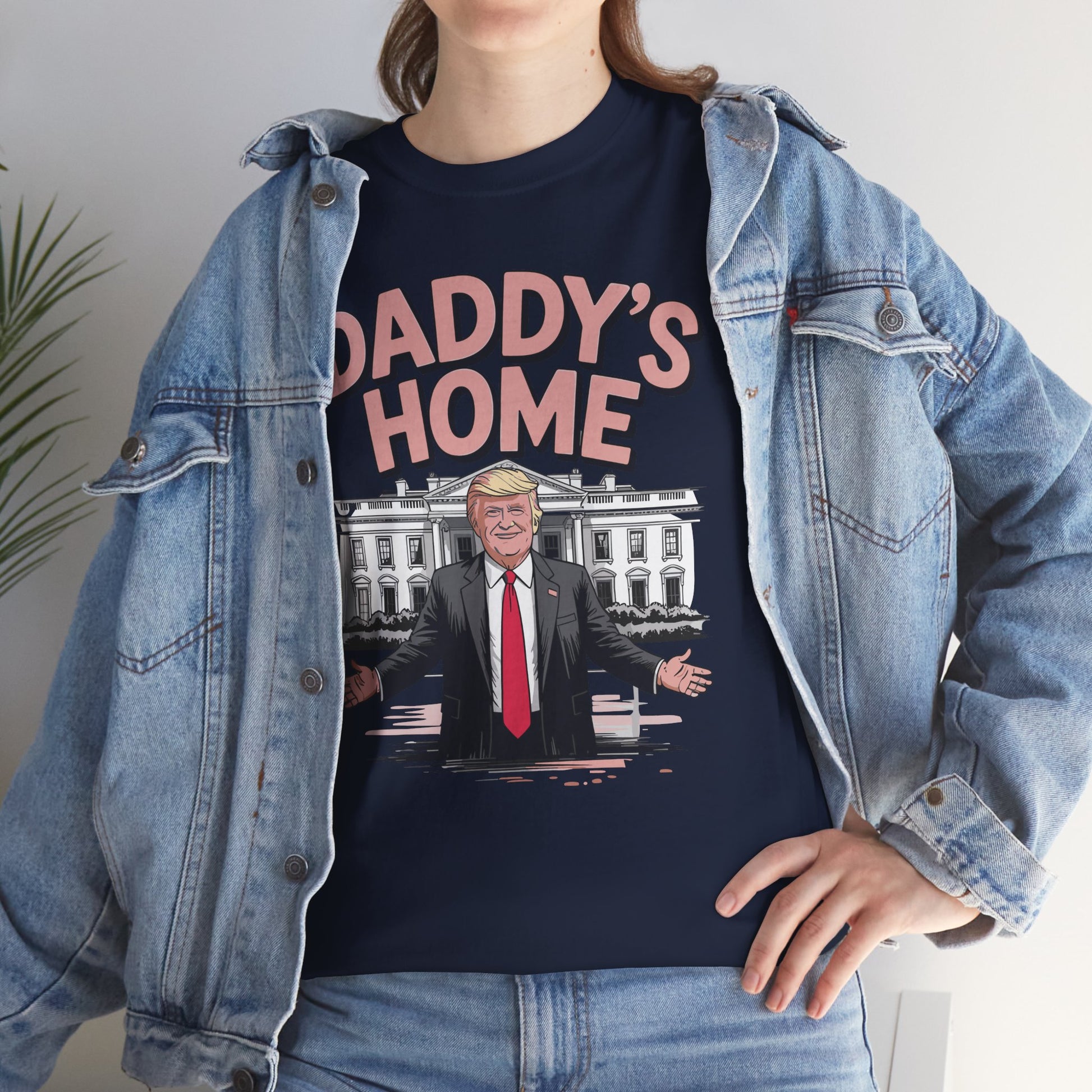 Is it a prophecy, a punchline, or just your favorite comeback? This eye-catching tee says it loud and proud: “Daddy’s Home” with a nod to the White House and 2025. Whether you’re rally-bound, celebrating Inauguration Day, or just stirring up conversation at brunch, this shirt is your go-to for making a statement that’s equal parts bold and cheeky.
