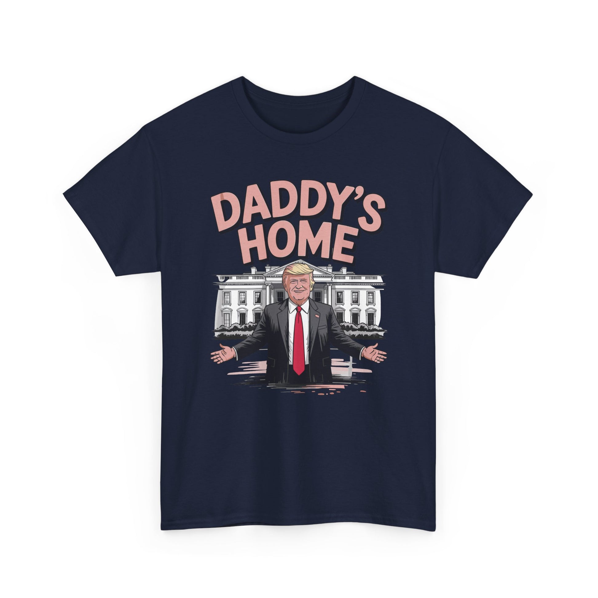 Retro-Inspired Graphic Design: Features “Daddy’s Home White House 2025” in bold lettering with patriotic flair—perfect for rallies, social media posts, or everyday wear.