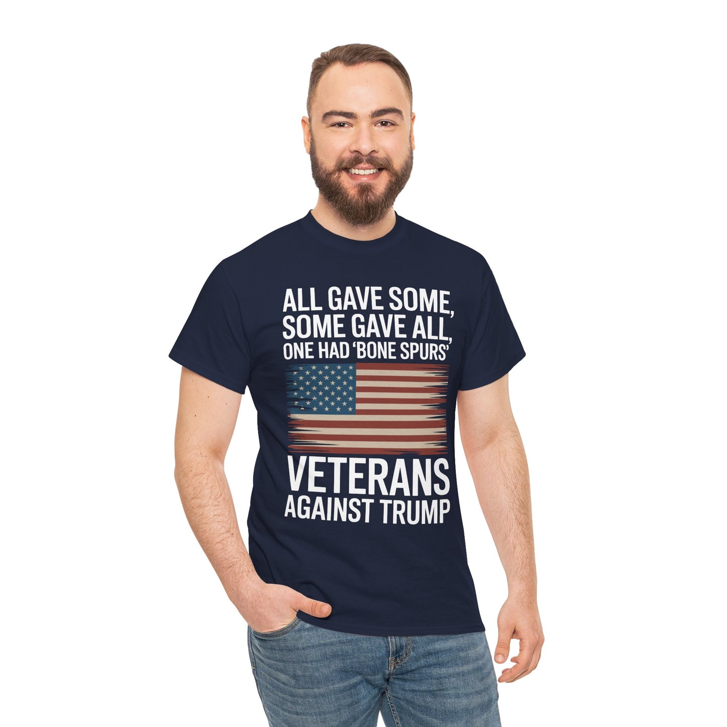 Powerful Graphic That Sparks Dialogue: Featuring the phrase “Veterans Against Trump” with patriotic accents, this tee is perfect for rallies, protests, or everyday wear that makes a difference.