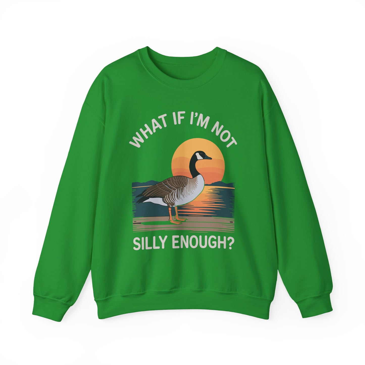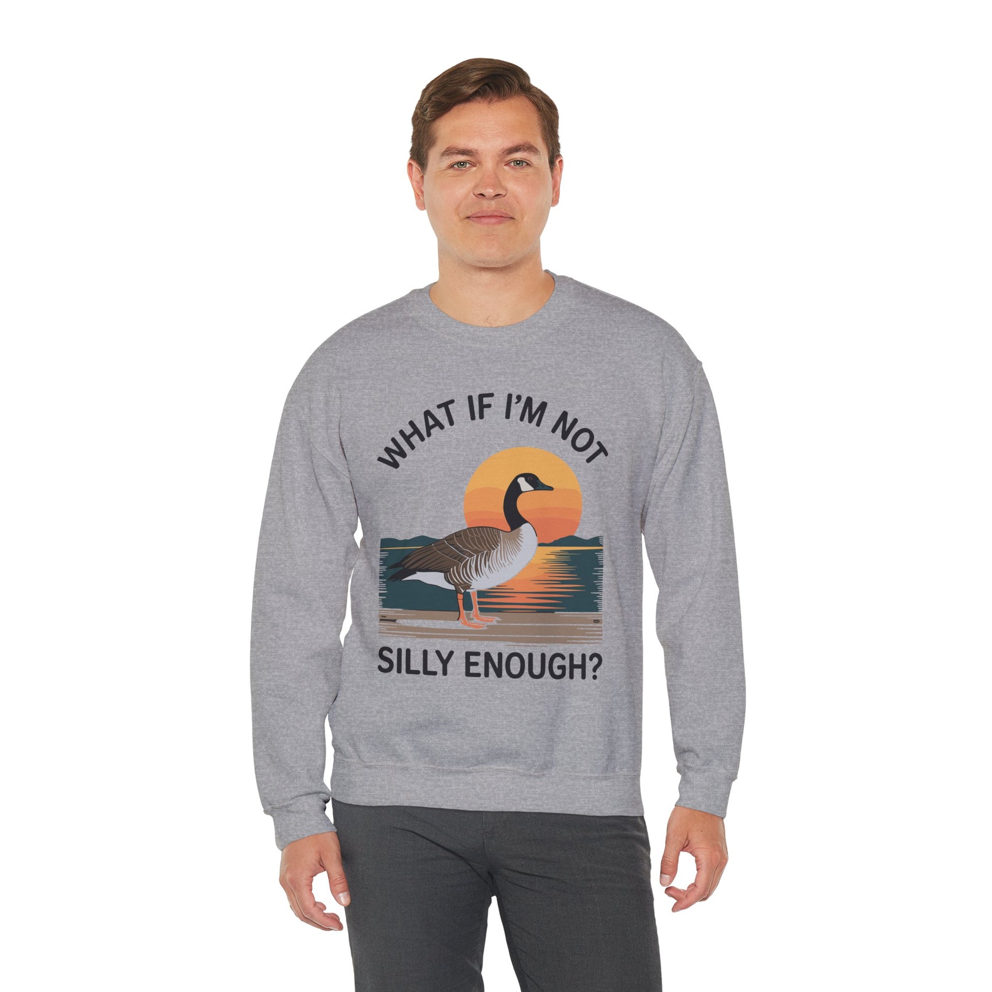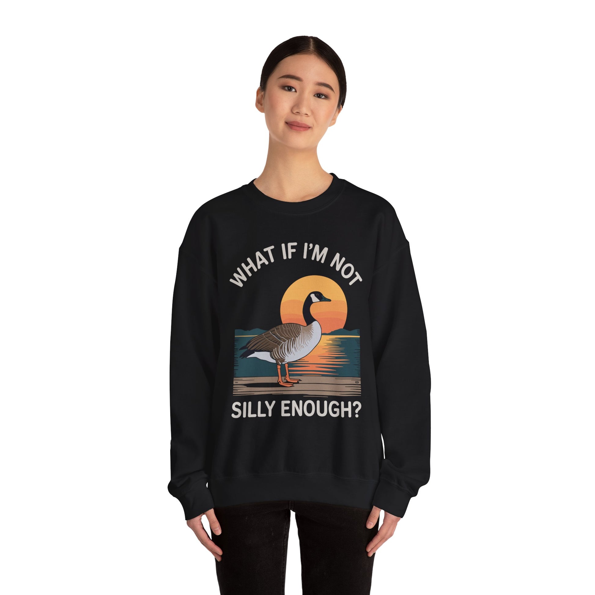 Ever lie awake wondering if you're just not silly enough? This sweatshirt turns that oddly relatable crisis into a wearable punchline. Featuring a confused goose-duck hybrid and a hilariously existential question, it’s perfect for meme lovers, bird nerds, and anyone who thrives on absurd humor. Whether you're chilling at home or waddling through life, this pullover wraps you in warmth and weirdness.