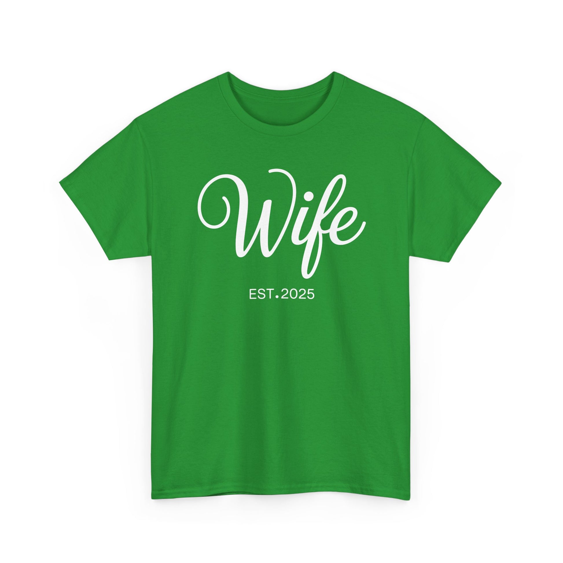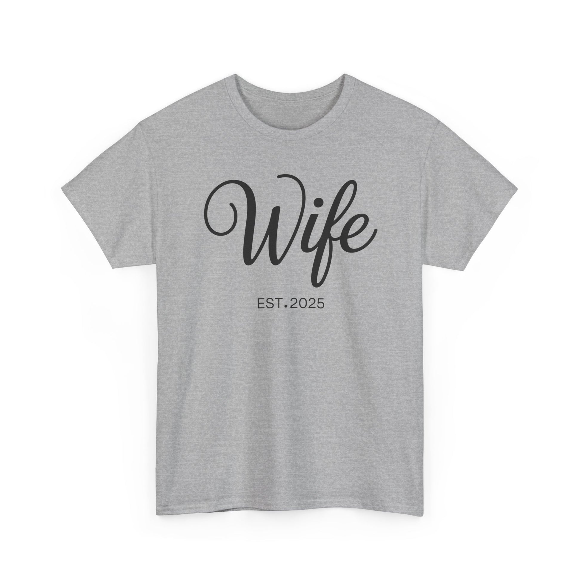 Just married and ready to flaunt your new title? This “Wife Est 2025” T-shirt is the perfect way to celebrate your love story with a wink and a smile. Whether you're honeymooning, heading to a post-wedding brunch, or just soaking in newlywed bliss, this tee adds charm and personality to your wardrobe.